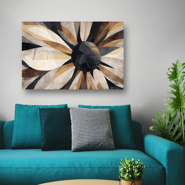 Abstracte Interpretatie van Zonnebloem in Monochrome canvas