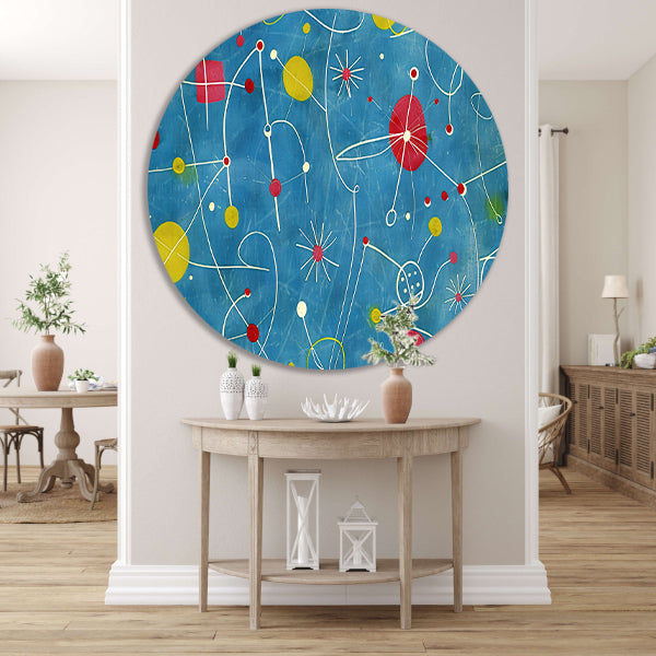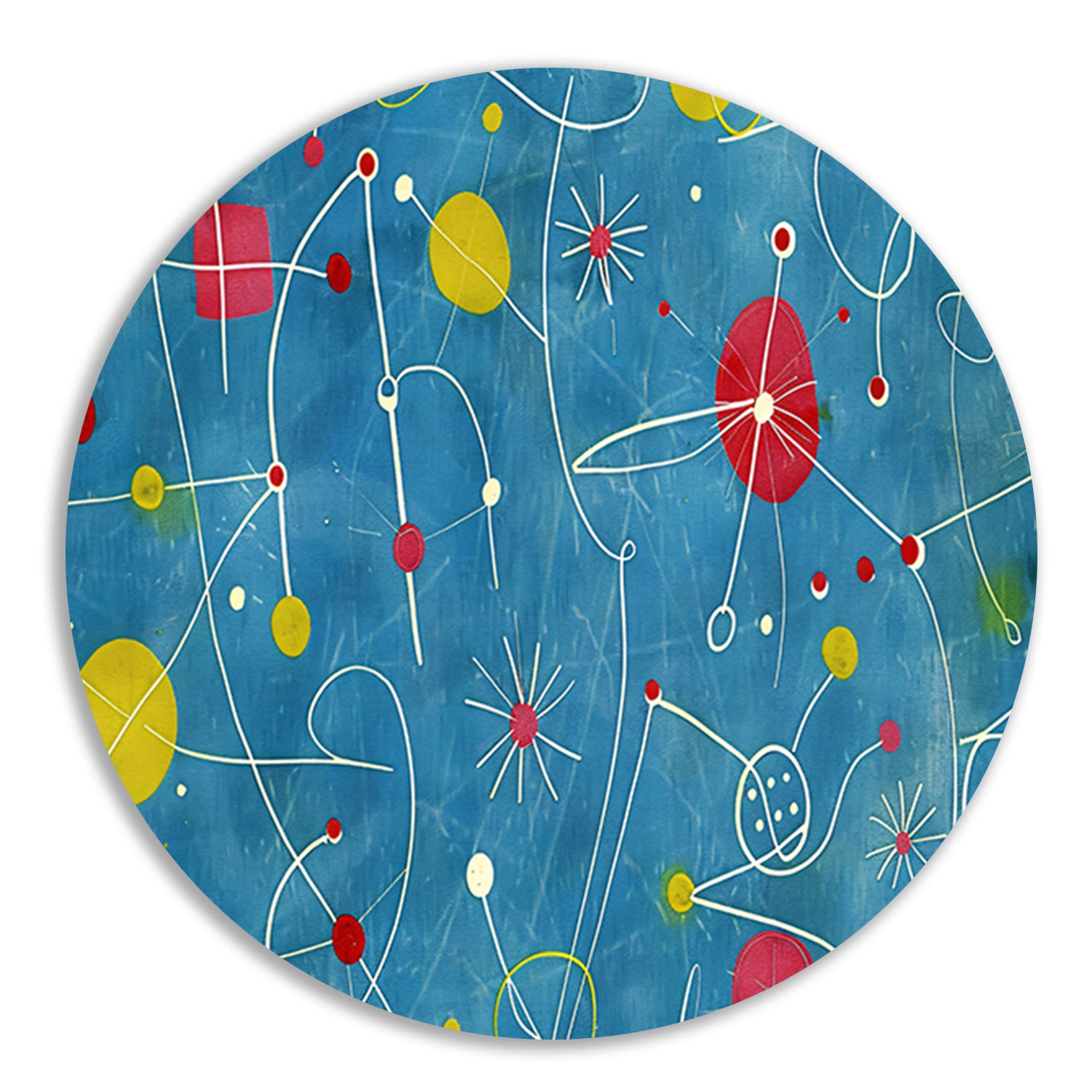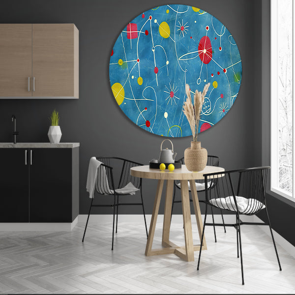 Abstracte kleurencompositie met speelse lijnen aluminium muurcirkel