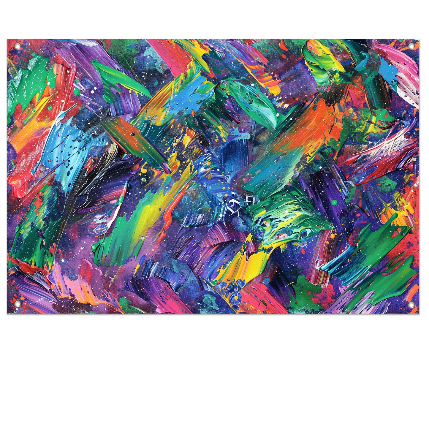 Abstracte kleurenexplosie met dynamische penseelstreken tuinposter
