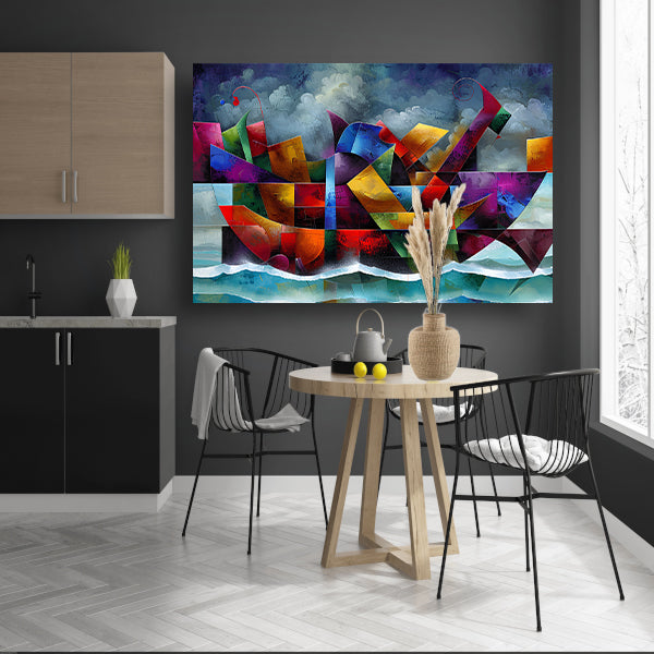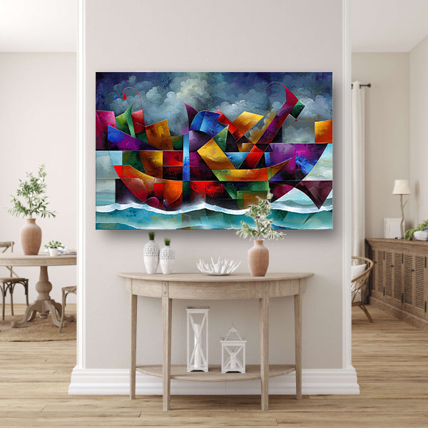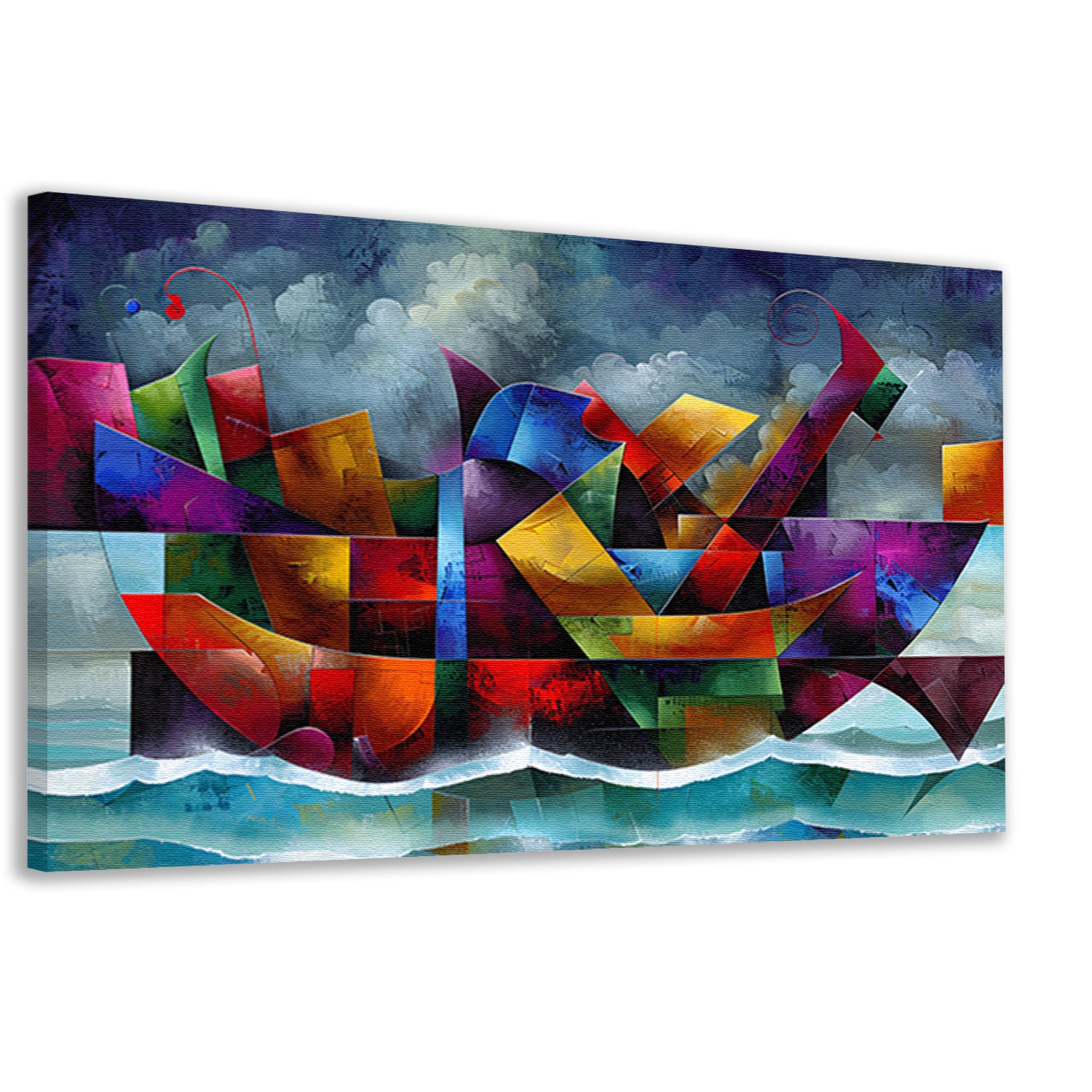 Abstracte Kleurenstorm met Golven en Boot canvas