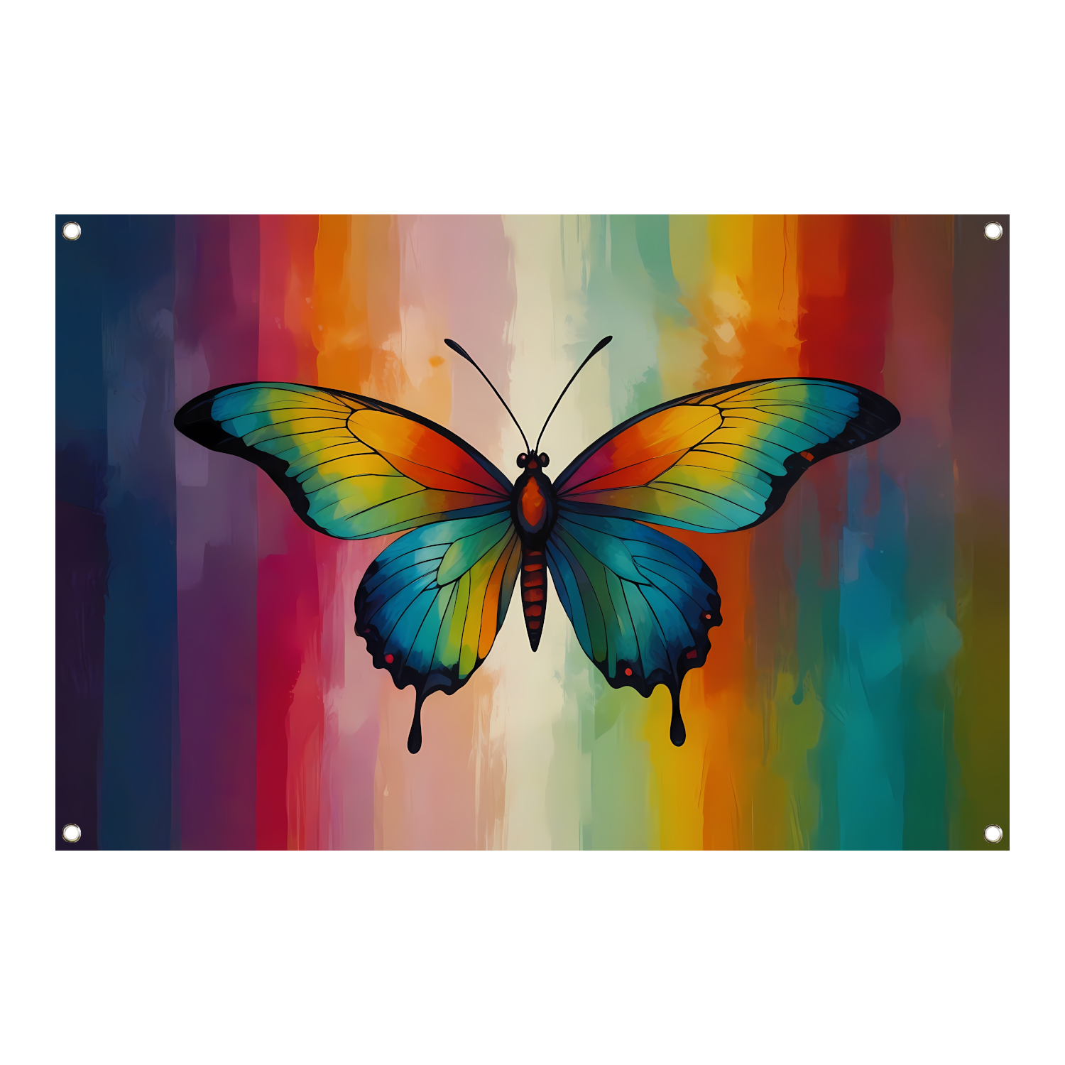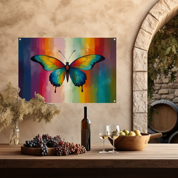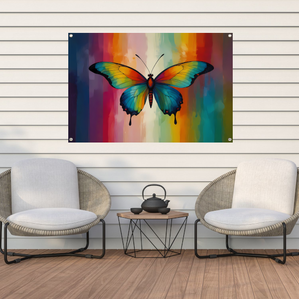 Abstracte kleurexplosie in vlindervorm tuinposter