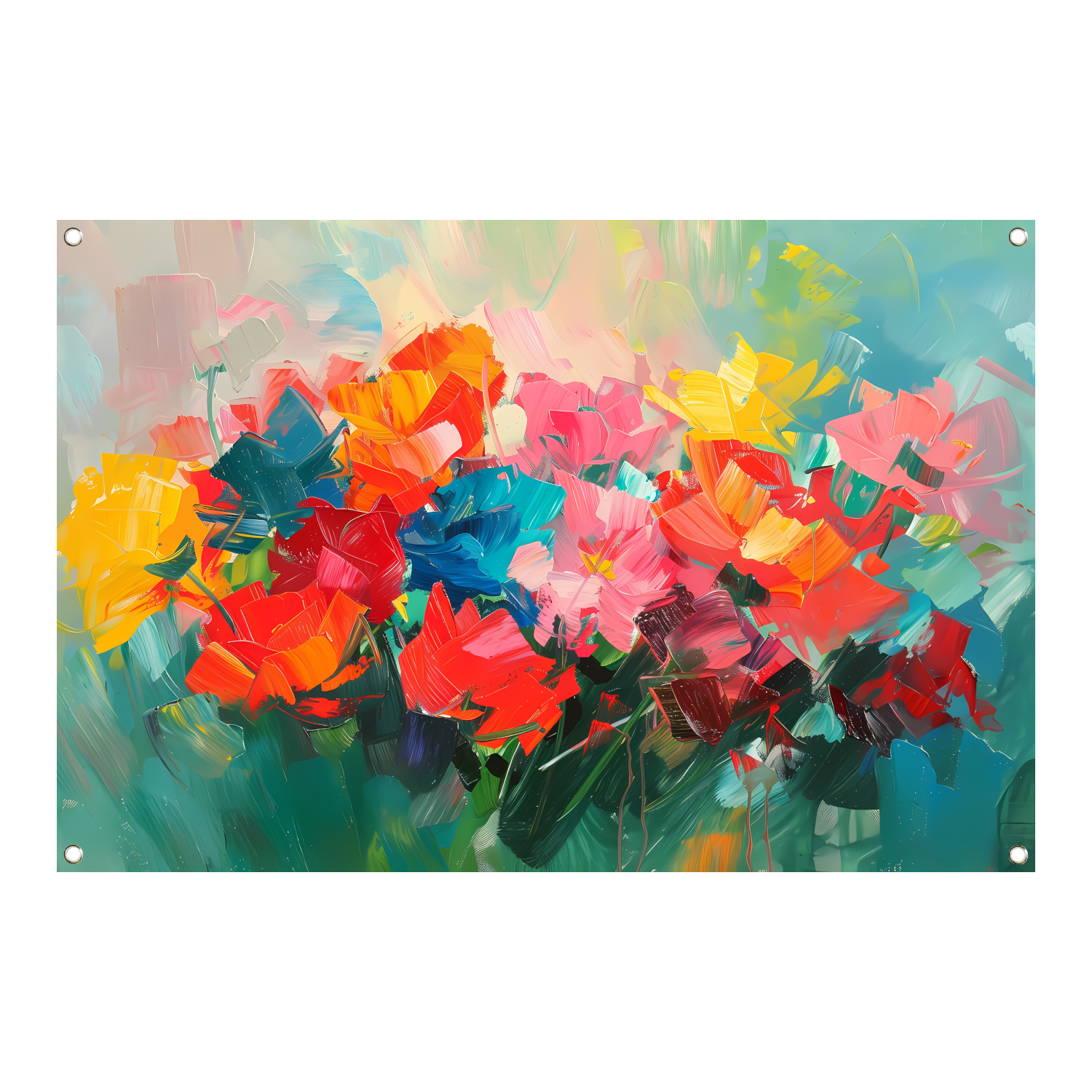 Abstracte kleurrijke bloemenweide olieverfschilderij tuinposter