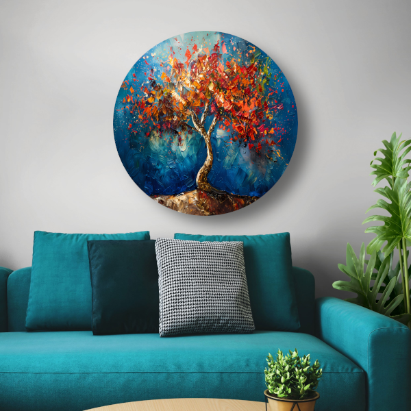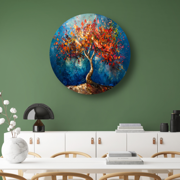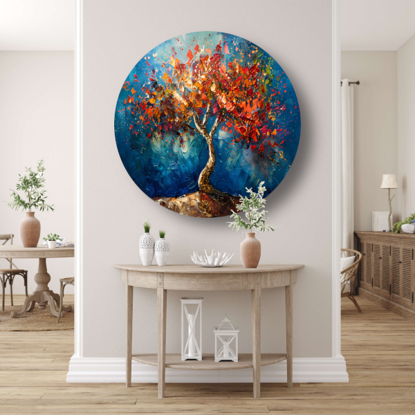 Abstracte kleurrijke boom in olieverf weergave forex muurcirkel