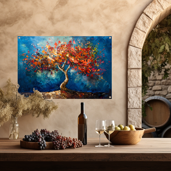 Abstracte kleurrijke boom in olieverf weergave tuinposter