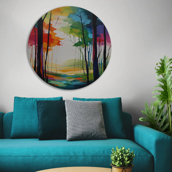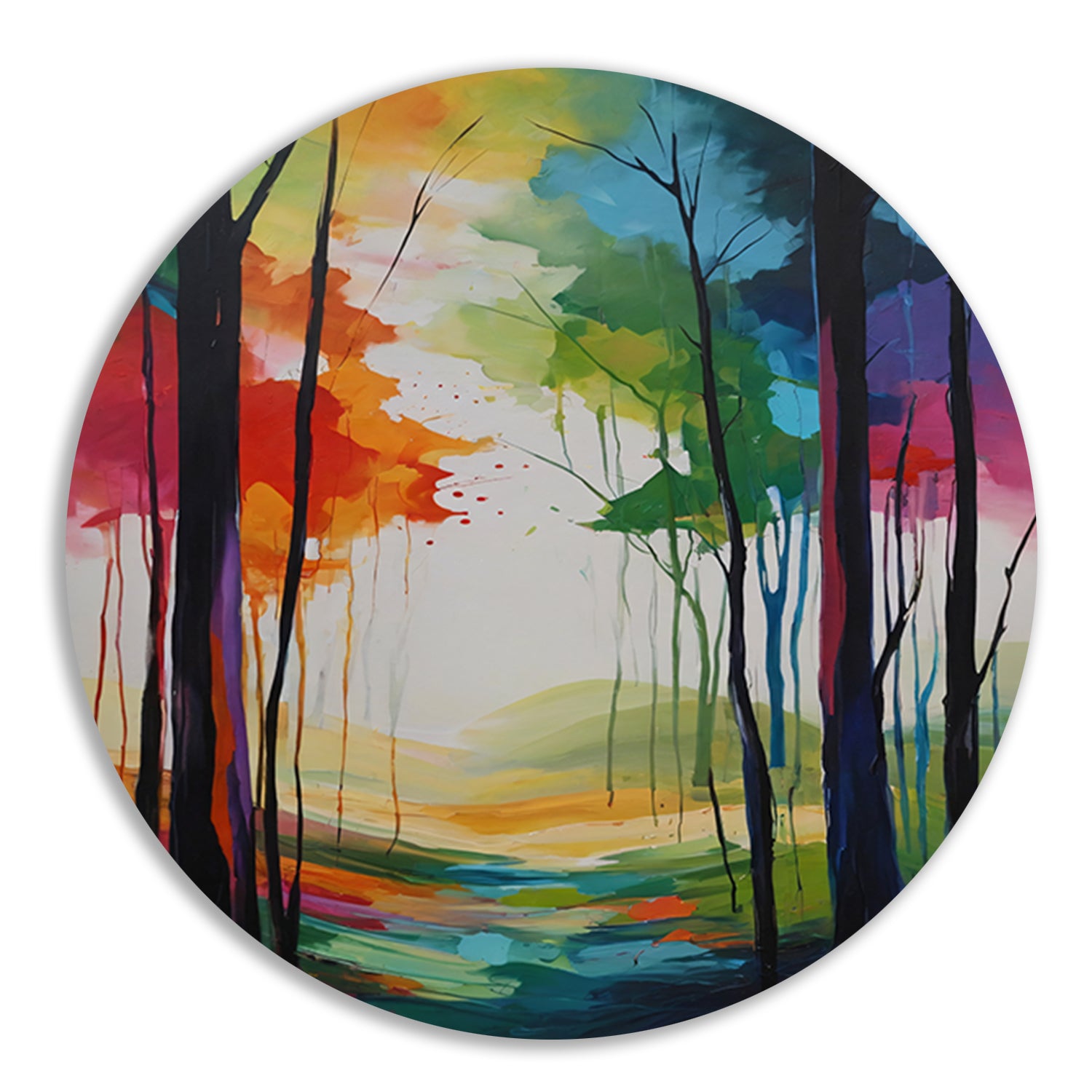 Abstracte Kleurrijke Boslandschap Impressie aluminium muurcirkel