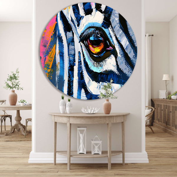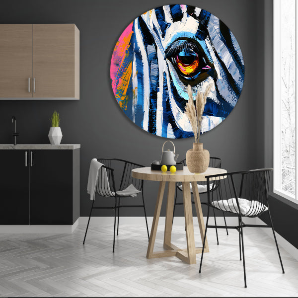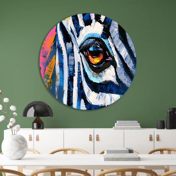 Abstracte kleurrijke close-up van een dierenoog aluminium muurcirkel