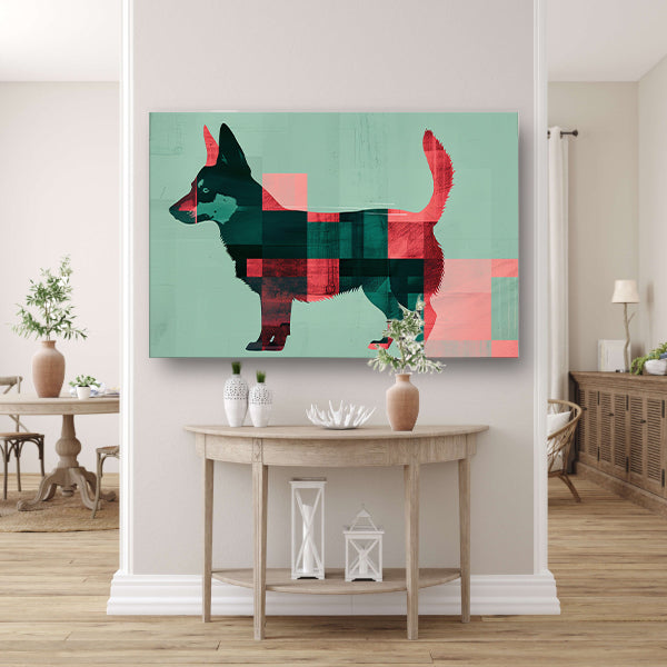Abstracte kleurrijke hond in geometrische vlakken canvas