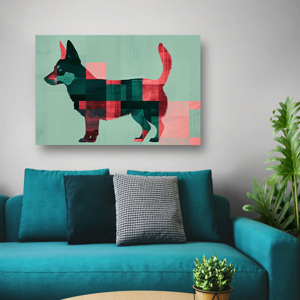 Abstracte kleurrijke hond in geometrische vlakken canvas met baklijst