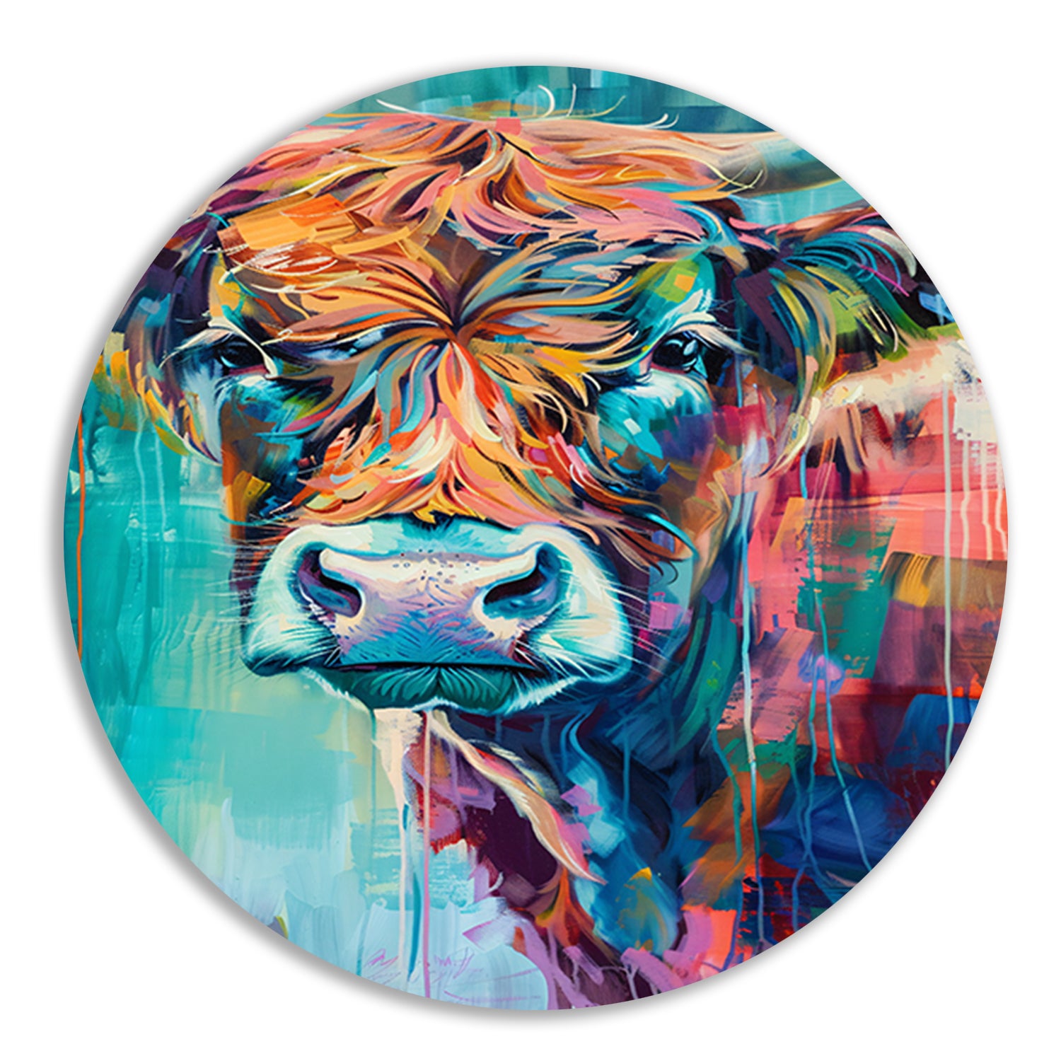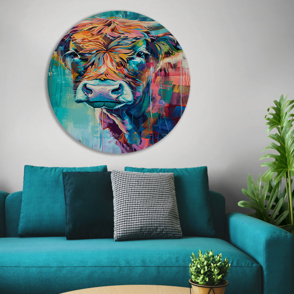 Abstracte Kleurrijke Hooglander met Dynamische Kleuren forex muurcirkel