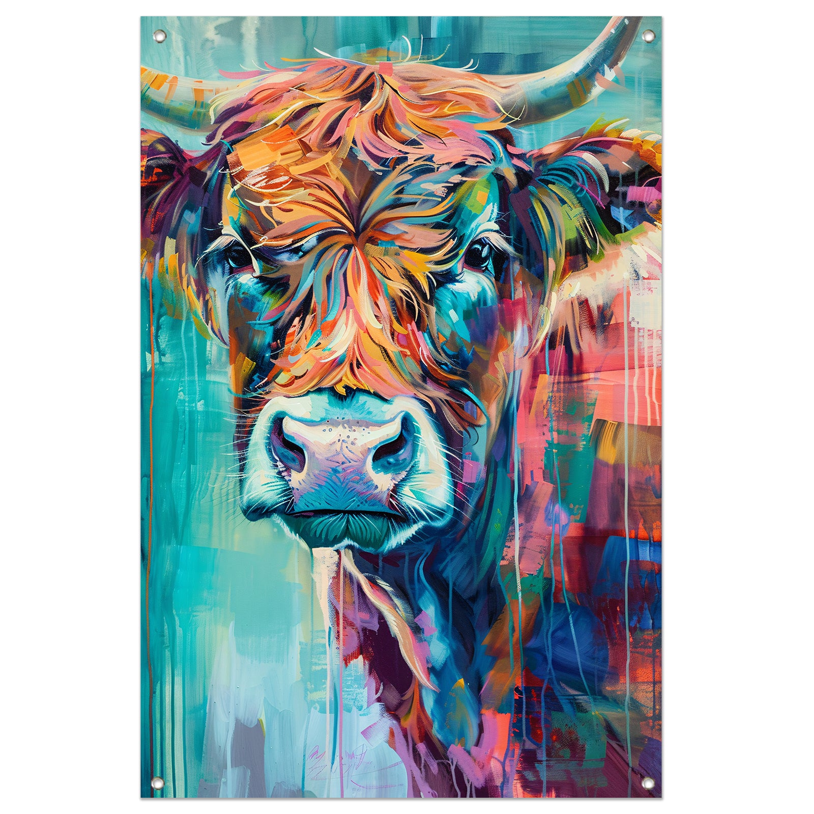 Abstracte Kleurrijke Hooglander met Dynamische Kleuren tuinposter