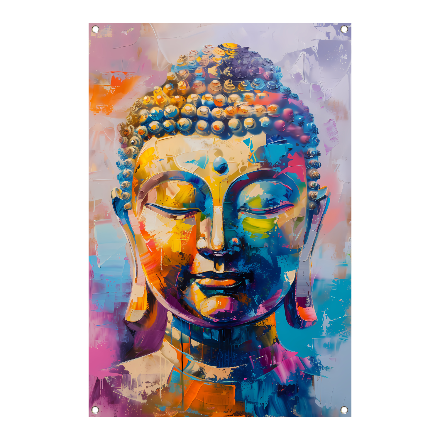 Abstracte Kleurrijke Interpretatie van een Boeddha Hoofd tuinposter
