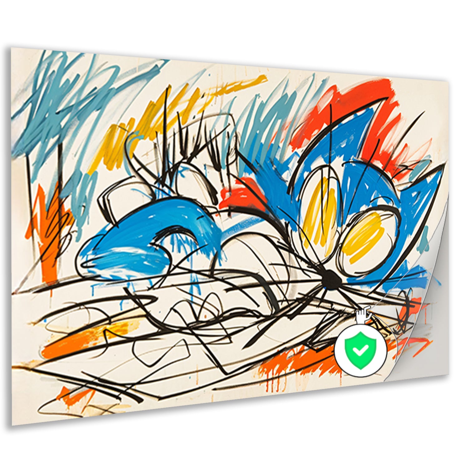 Abstracte kleurrijke kat schilderij in moderne stijl poster