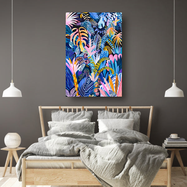 Abstracte kleurrijke kunst van planten en bladeren canvas
