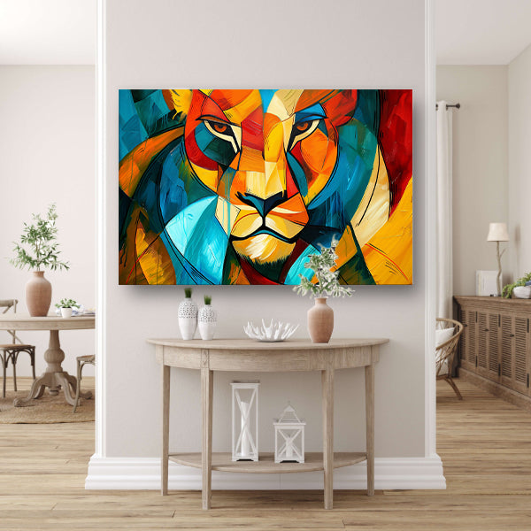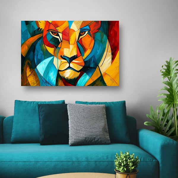 Abstracte kleurrijke leeuw in kubistische stijl canvas