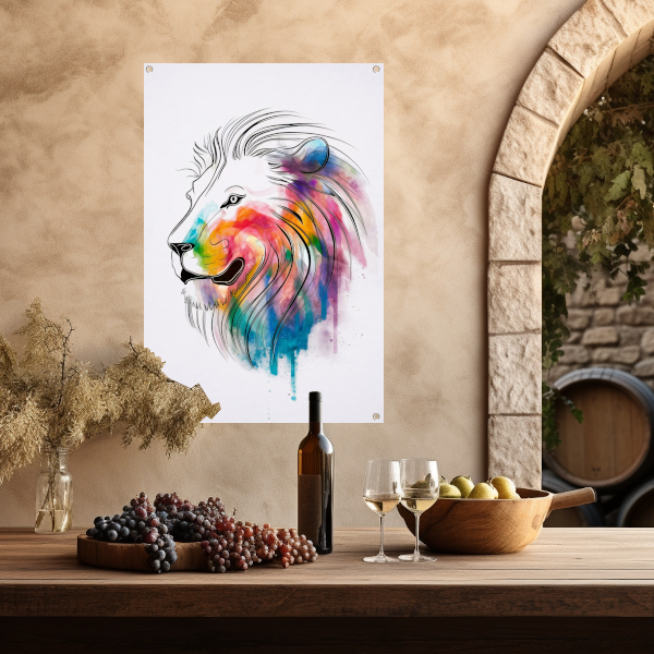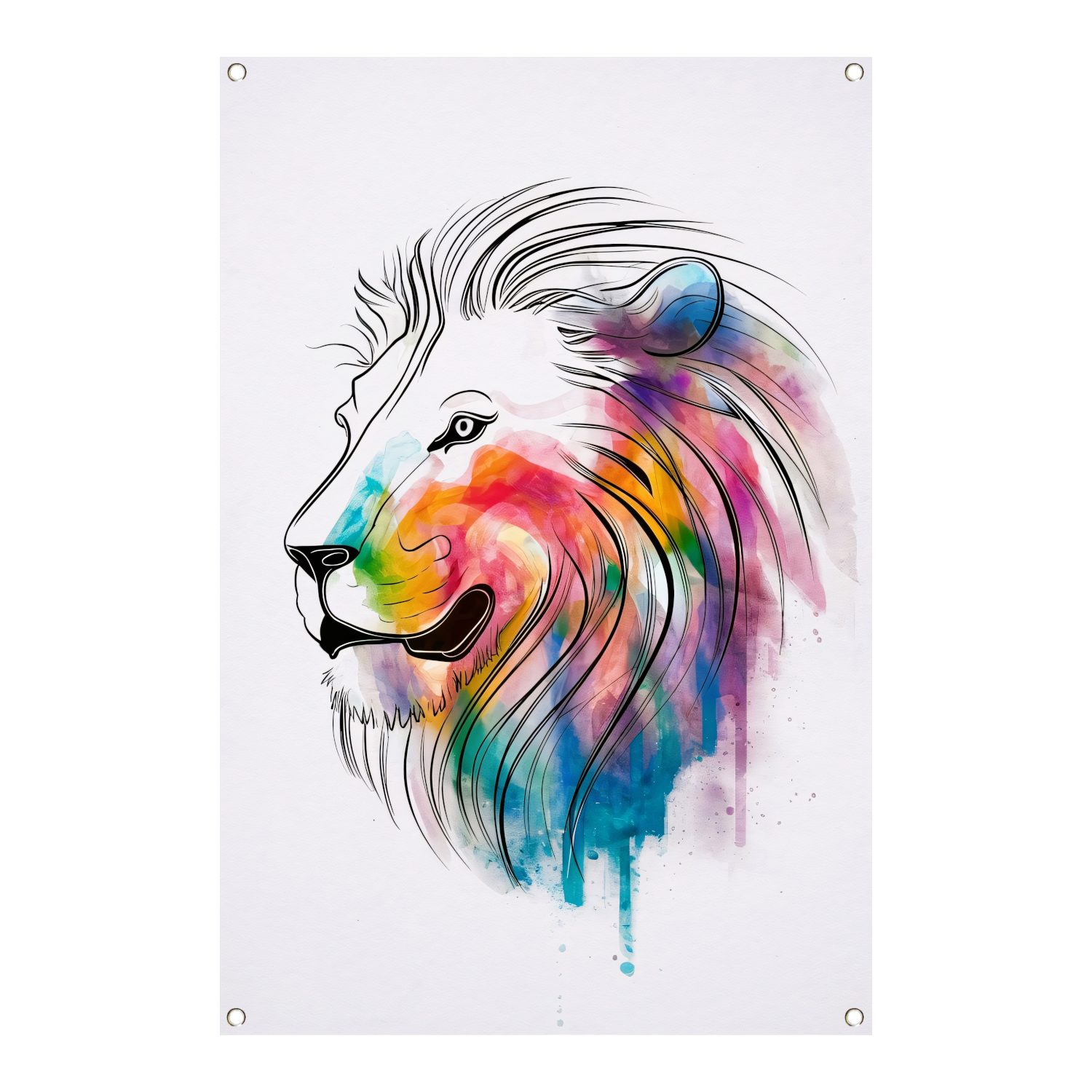 Abstracte Kleurrijke Leeuw in Lijnen tuinposter