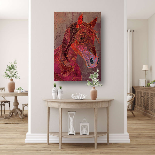Abstracte kleurrijke lijntekening van een paard canvas met baklijst