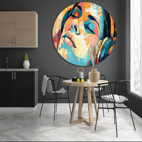 Abstracte kleurrijke portret met hoofdtelefoon aluminium muurcirkel