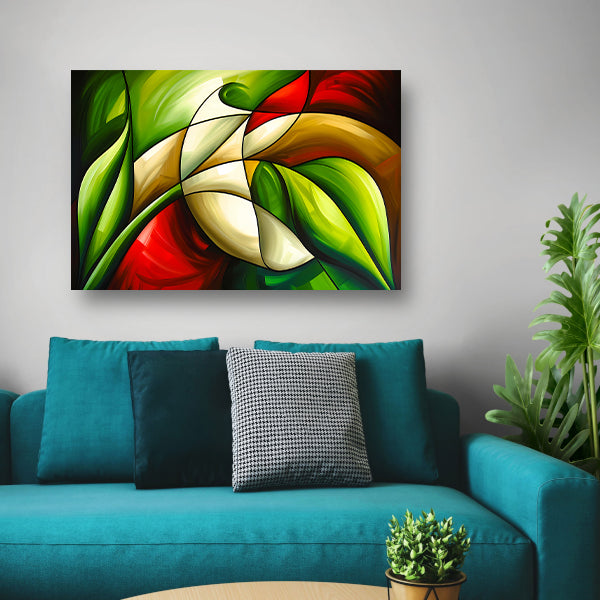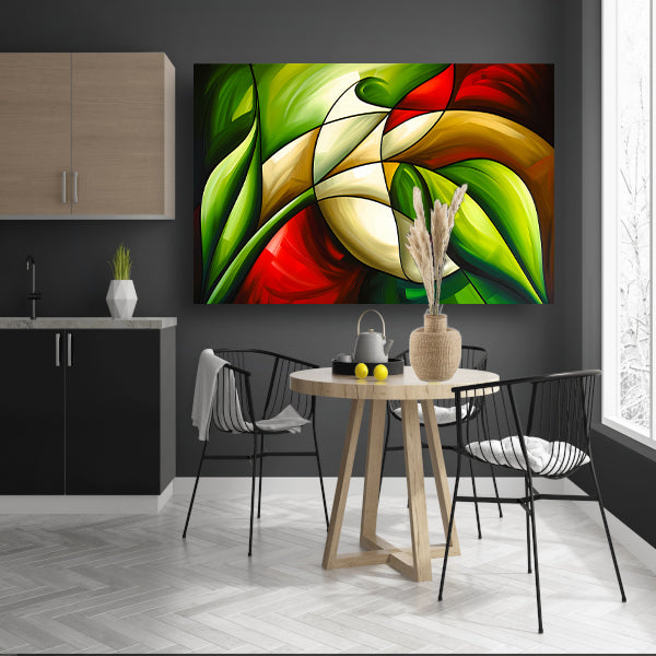 Abstracte kleurrijke roos en bladeren schilderij acrylglas