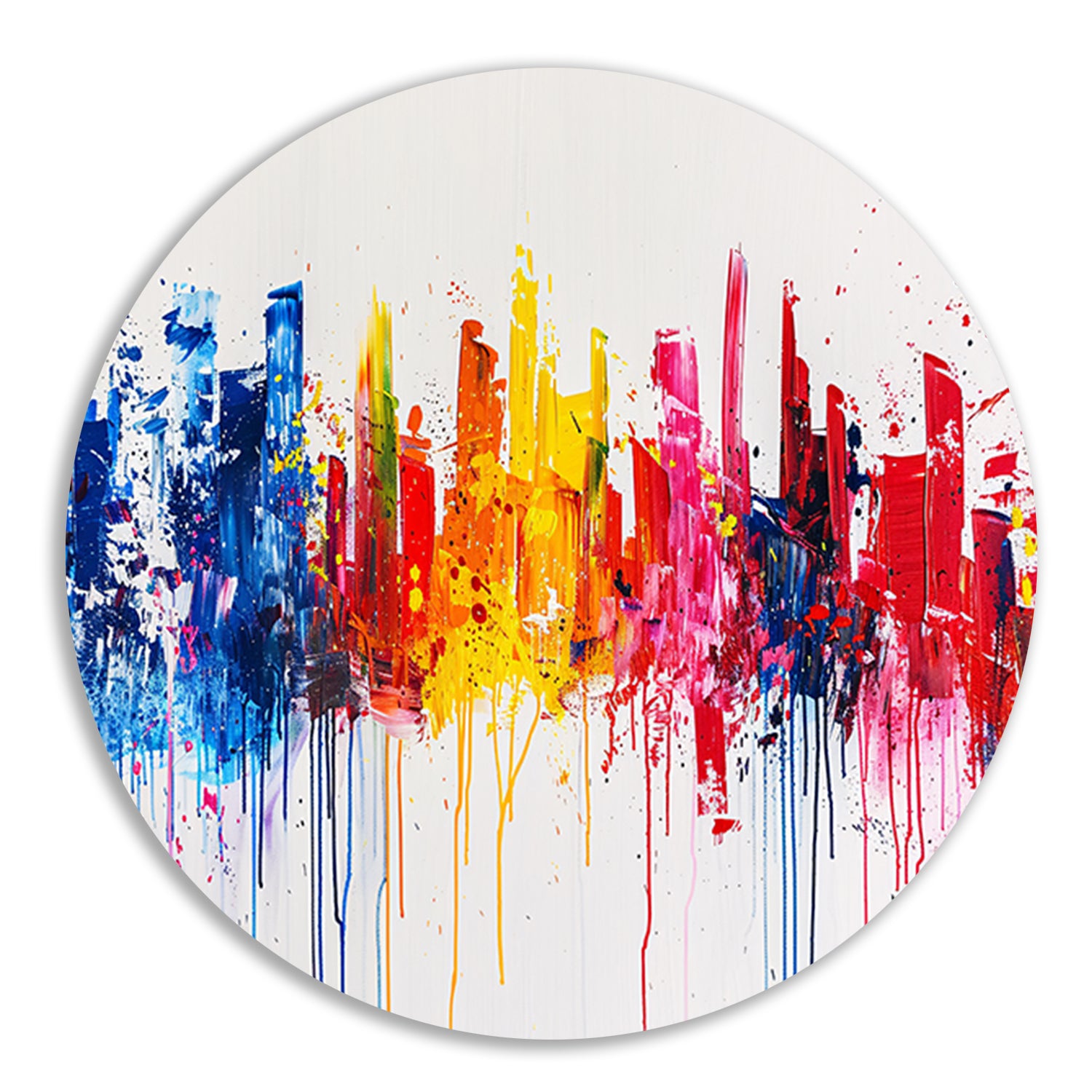 Abstracte kleurrijke skyline op witte achtergrond forex muurcirkel
