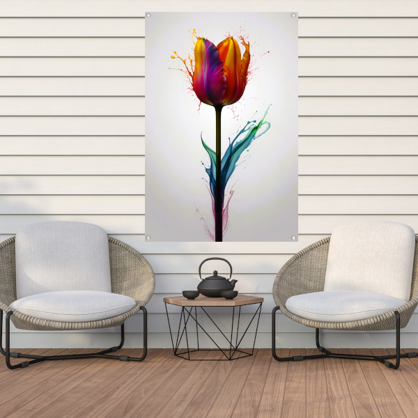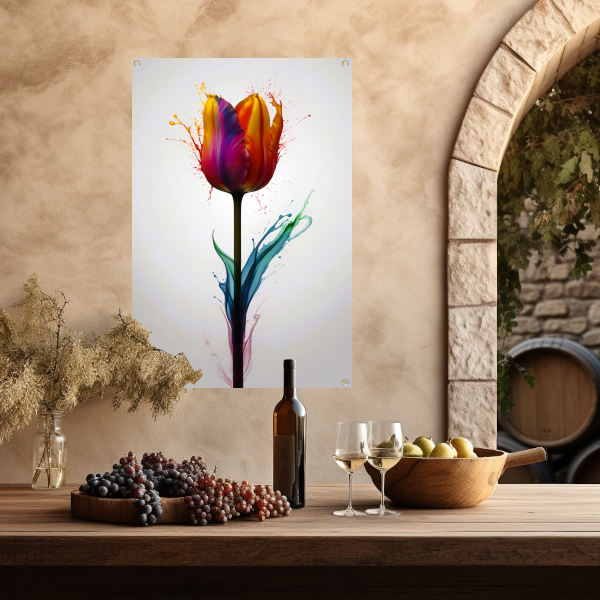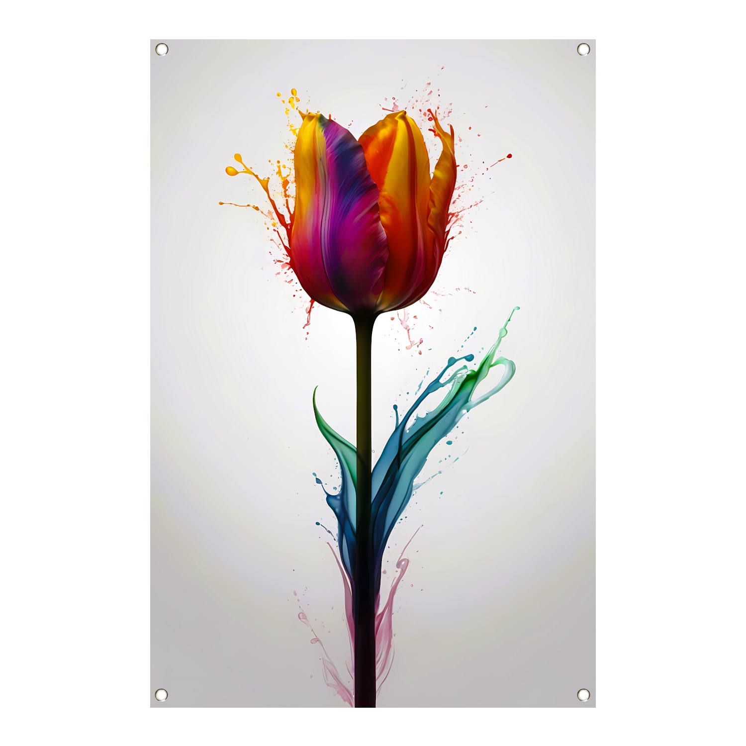 Abstracte kleurrijke tulp in vloeibare stijl tuinposter