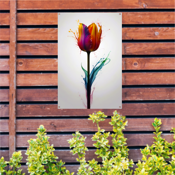 Onze tuinposters zijn UV- en waterbestendig, waardoor ze bestand zijn tegen zon en regen en hun kleuren langdurig mooi blijven. Alle tuinposters van De Muurdecoratie zijn voorzien van ringen in de hoeken, zodat je ze eenvoudig kunt ophangen. Let op: onze tuinposters worden niet met ophangsysteem geleverd.