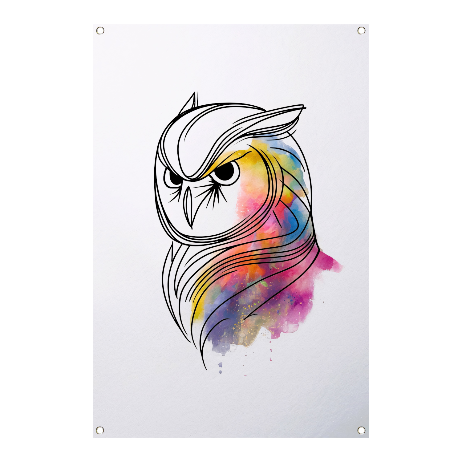 Abstracte Kleurrijke Uil in Lijnkunst tuinposter