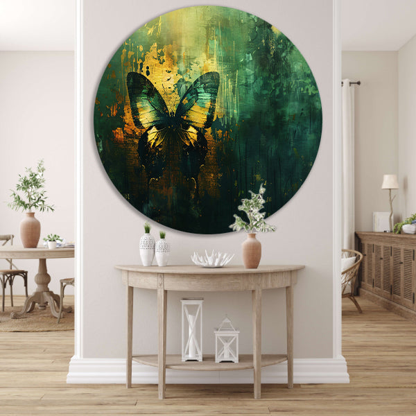 Abstracte kleurrijke vlinder op dynamische achtergrond aluminium muurcirkel