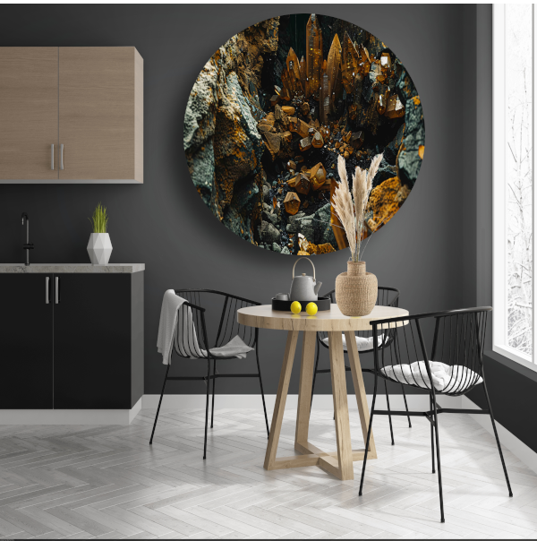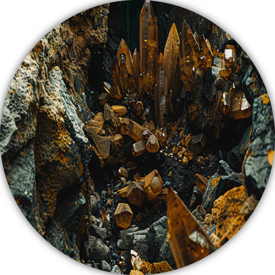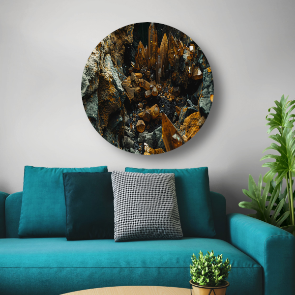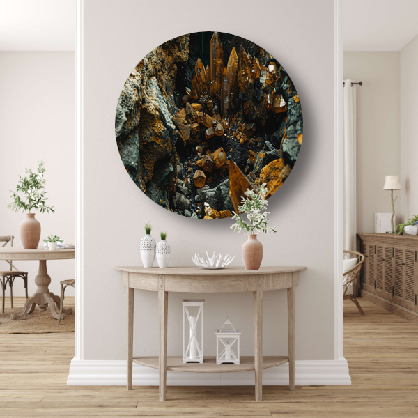 Abstracte Kristallen op Rotsen aluminium muurcirkel