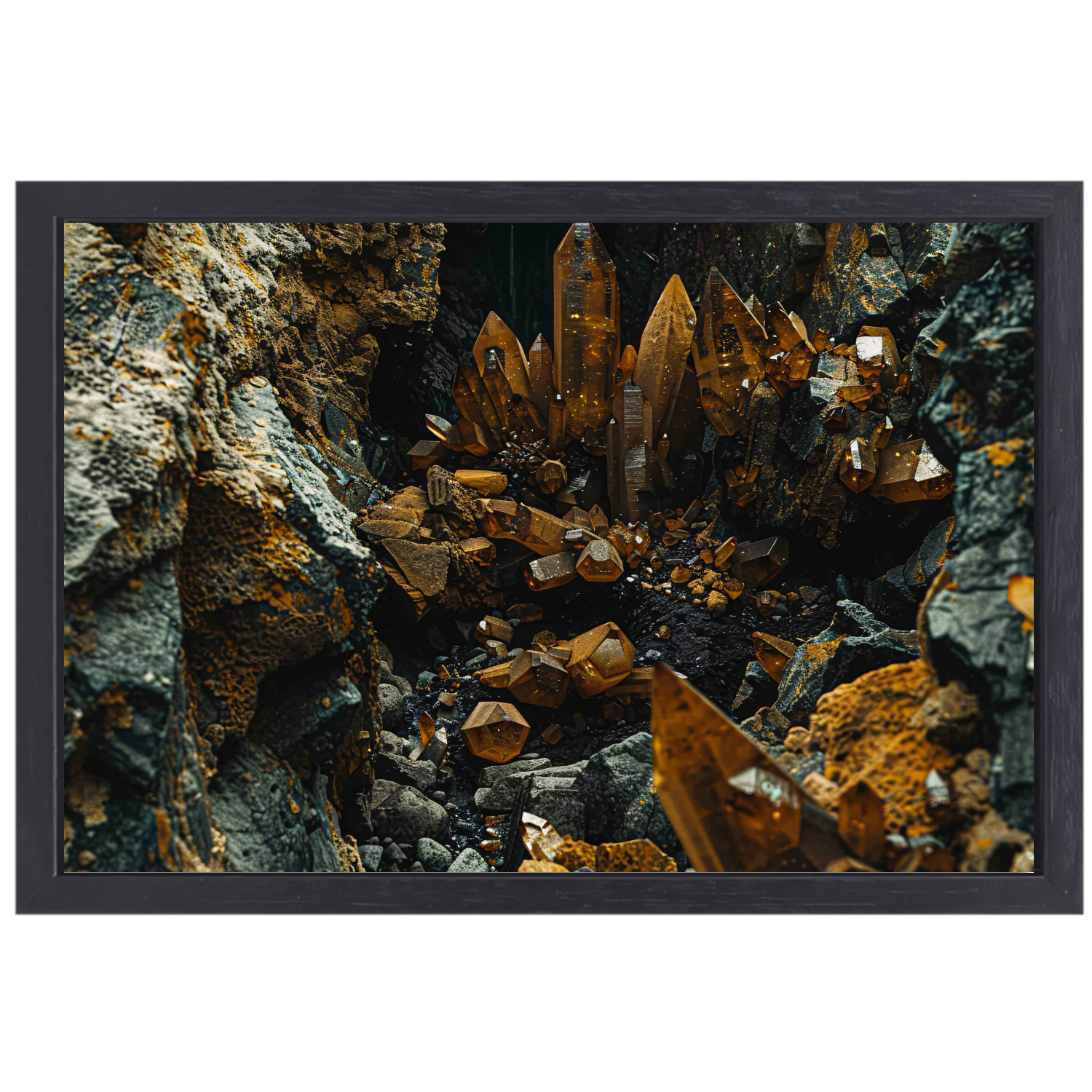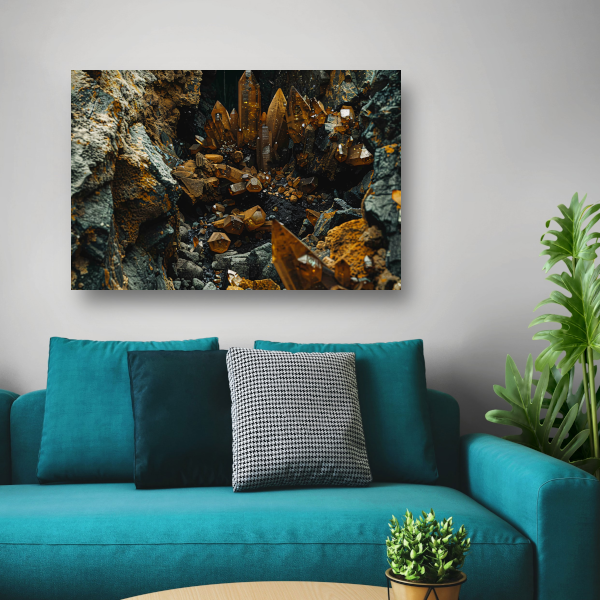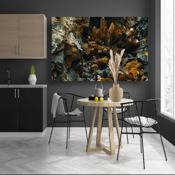 Abstracte Kristallen op Rotsen canvas met baklijst