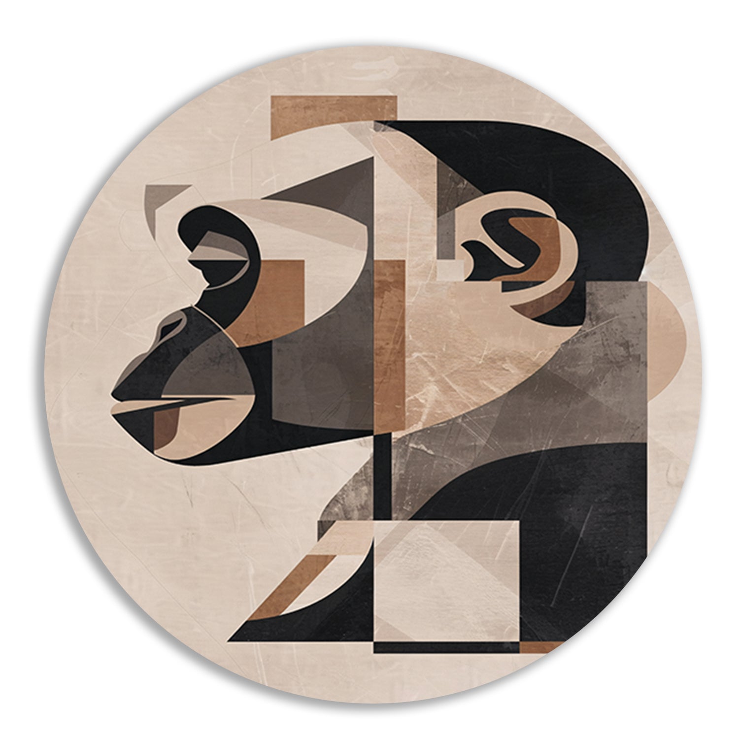 Abstracte Kubistische Aap in Sepiatonen aluminium muurcirkel