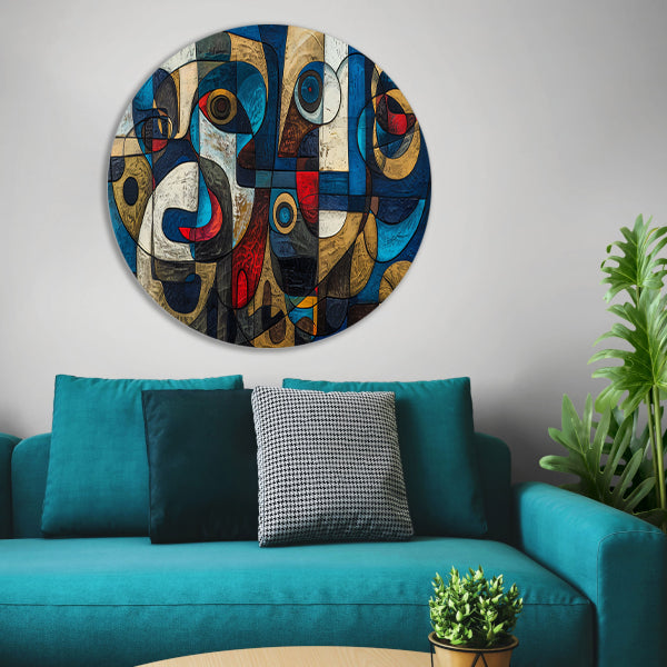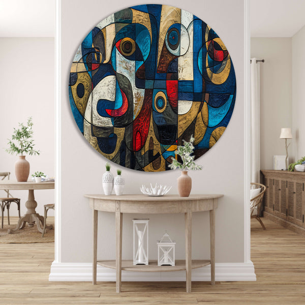 Kies voor deze prachtige abstracte kubistische compositie in levendige kleuren forex muurcirkel en geef jouw interieur een artistieke touch!