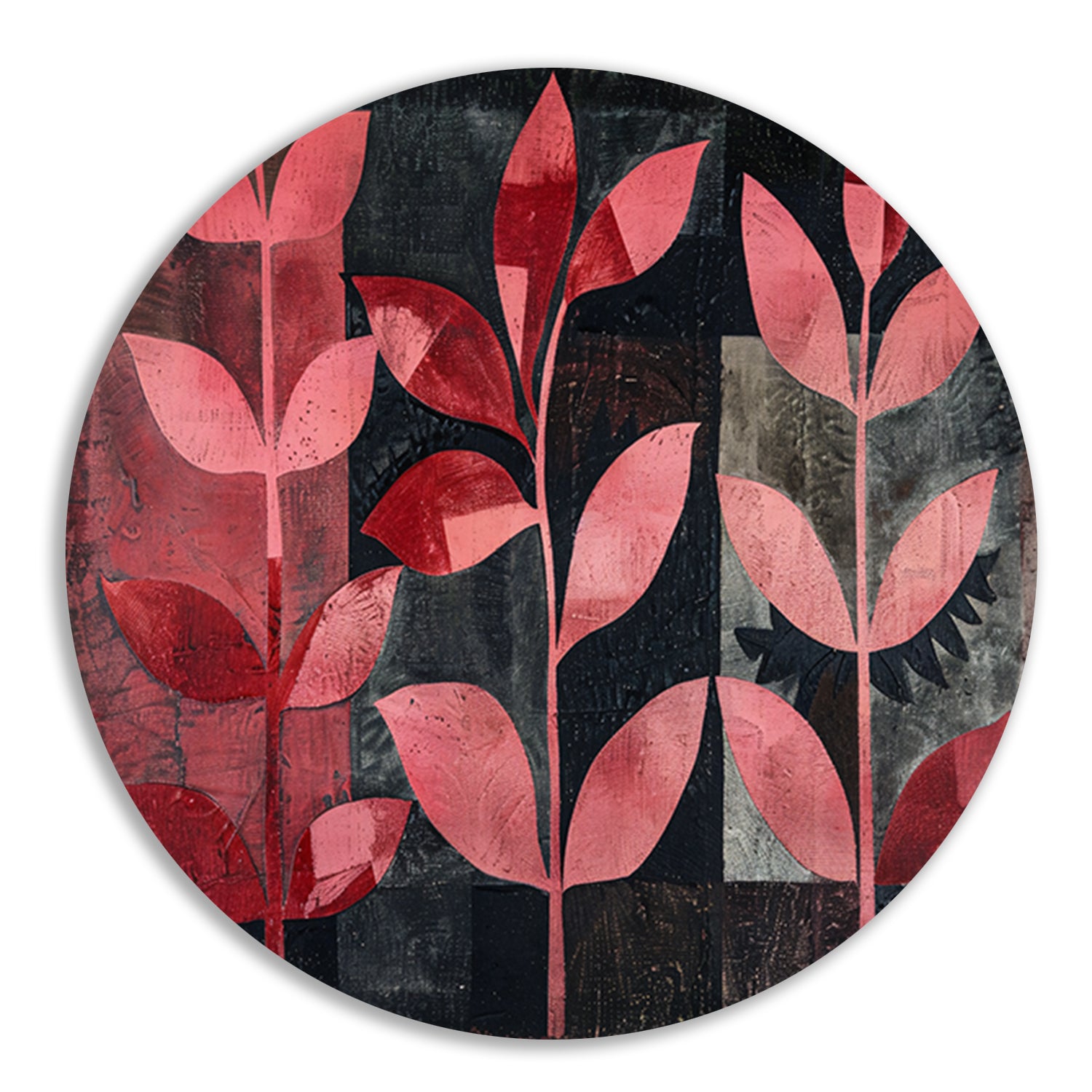 Abstracte kunst met rode bladeren op zwart forex muurcirkel