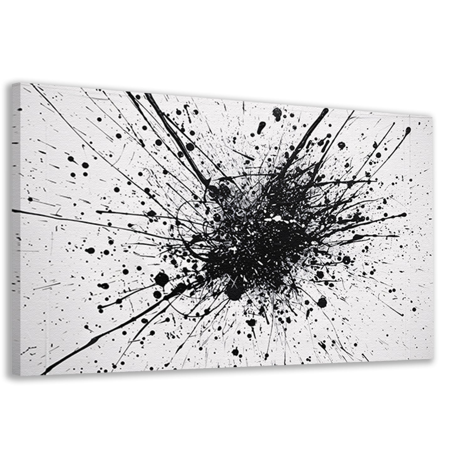 Abstracte kunst met zwarte en witte verfspatten canvas