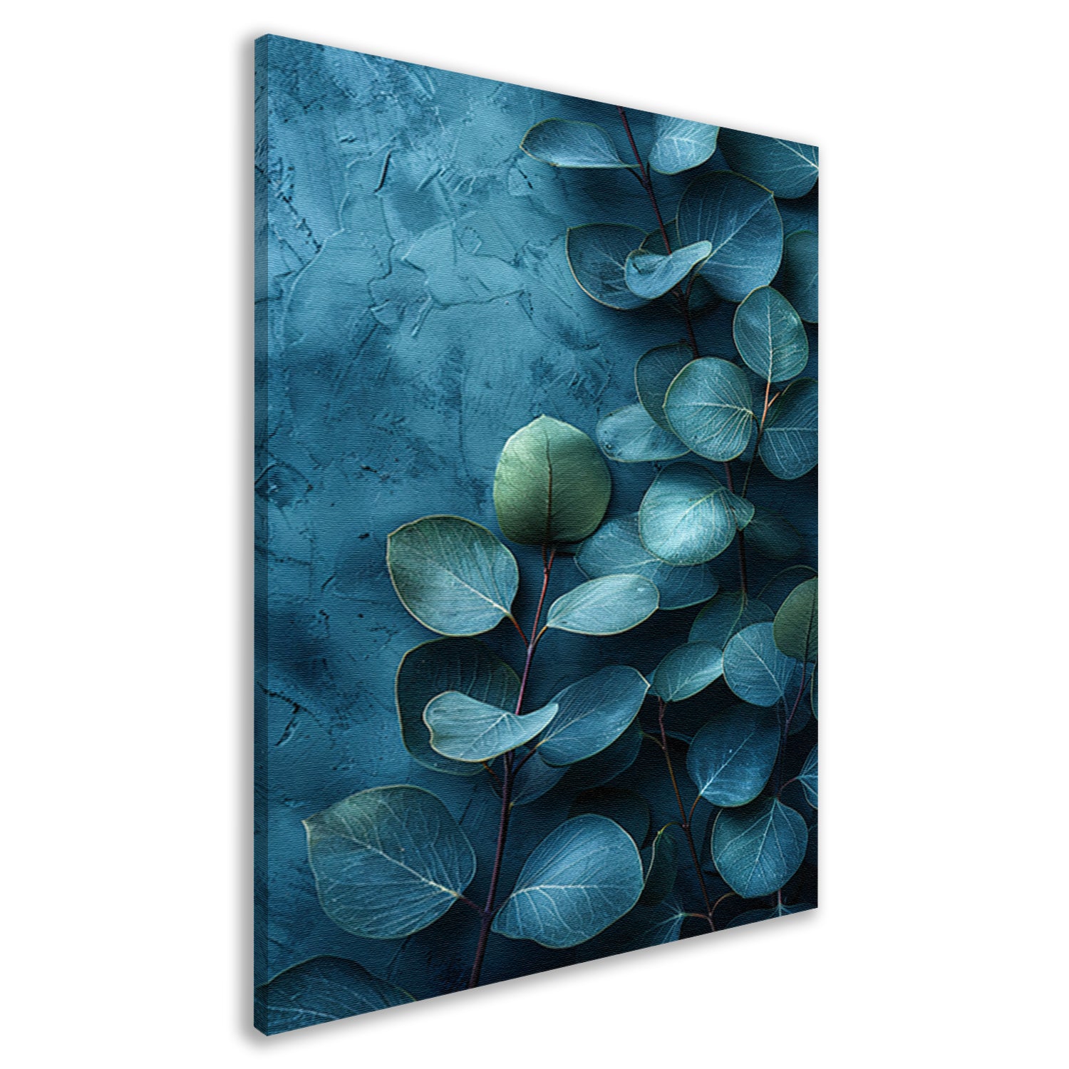 Abstracte kunst van bladeren op getextureerde blauwe achtergrond canvas