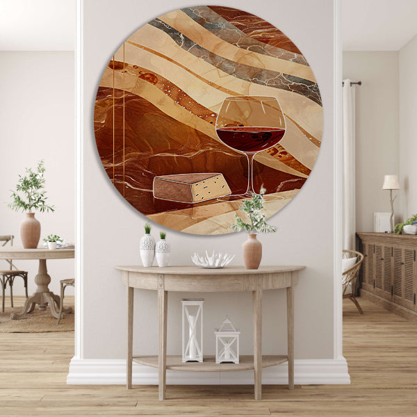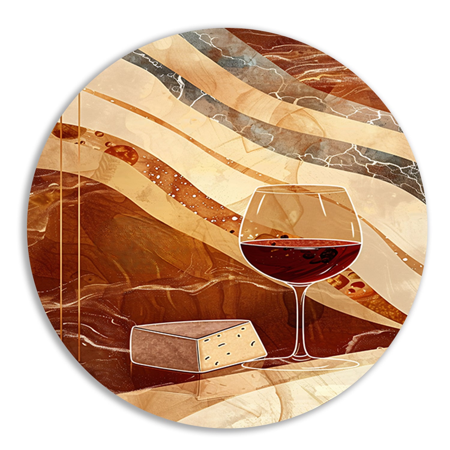 Abstracte kunst van wijn en kaas aluminium muurcirkel