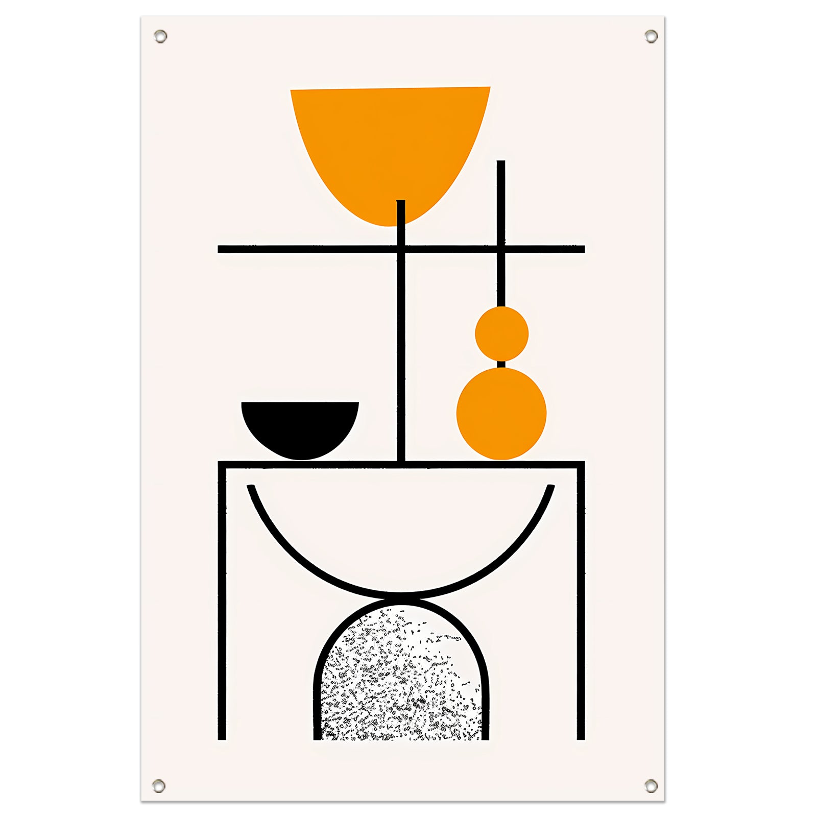 Abstracte Kunst: Zwart, Wit en Oranje Vormen tuinposter