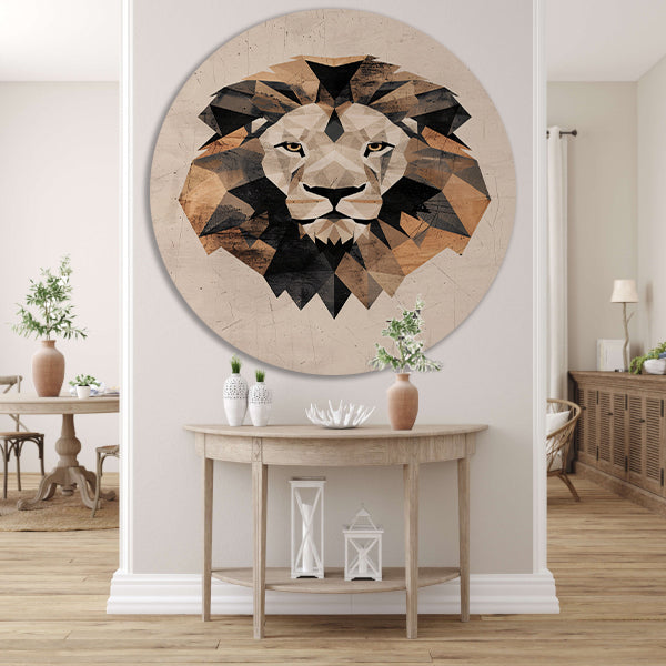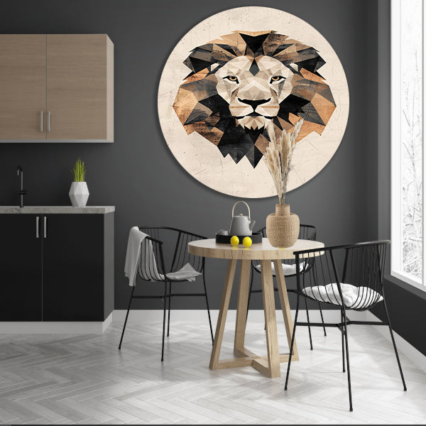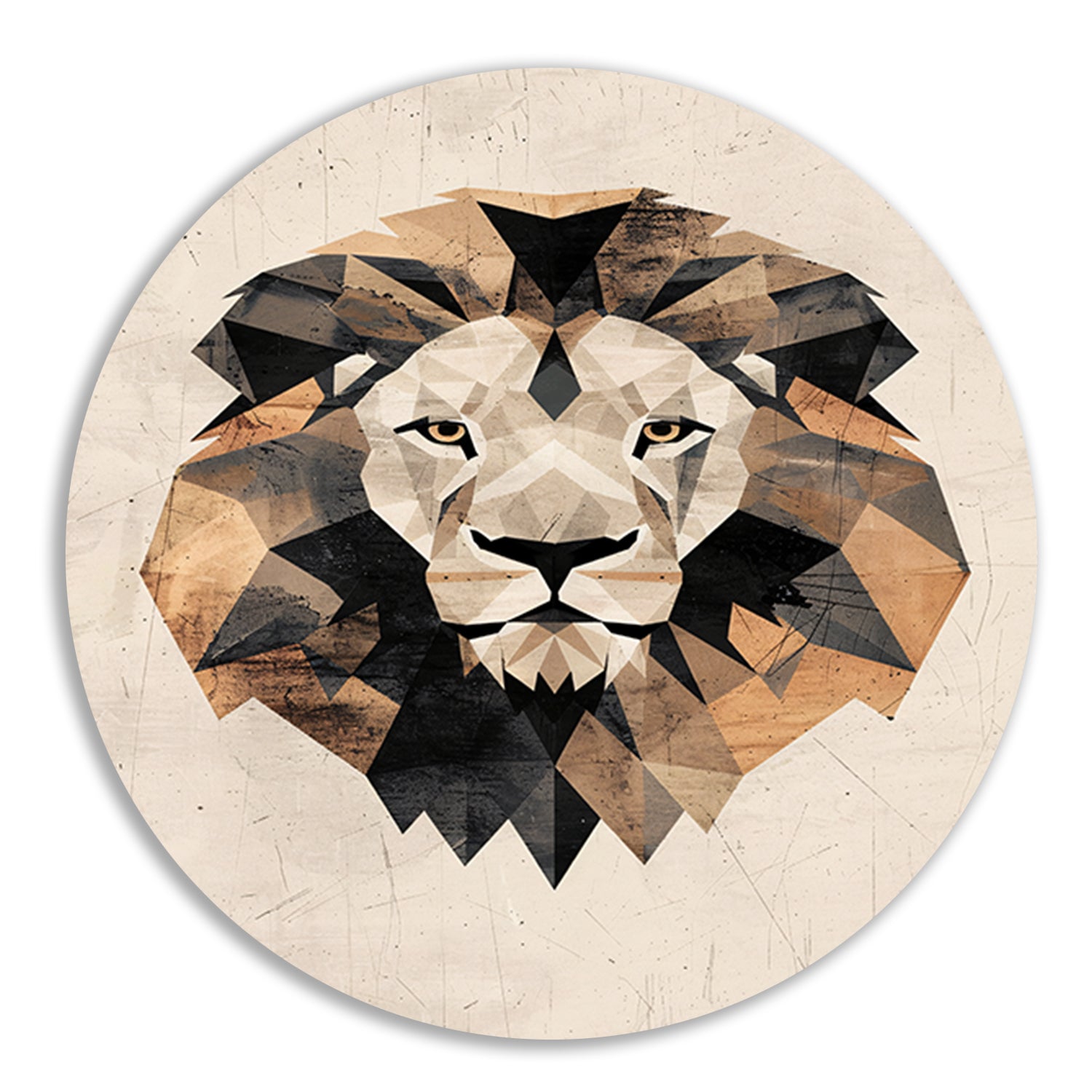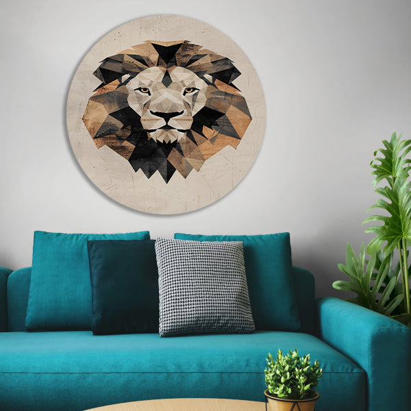 Abstracte Leeuw in Geometrische Art Deco Stijl aluminium muurcirkel