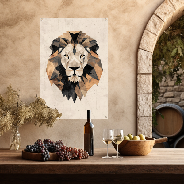 Abstracte Leeuw in Geometrische Art Deco Stijl tuinposter