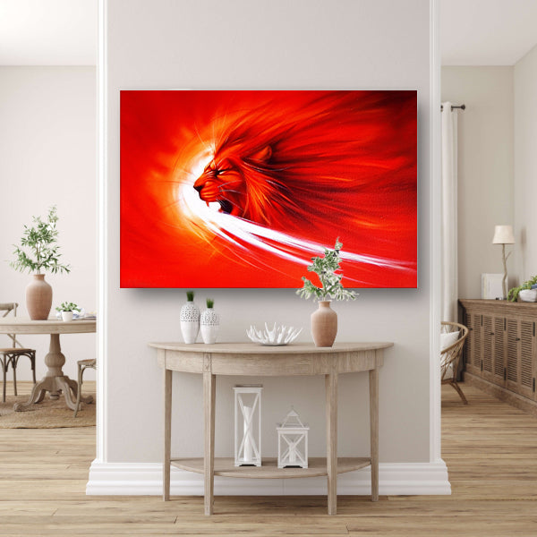 Abstracte leeuw in vurige kleuren schilderij canvas