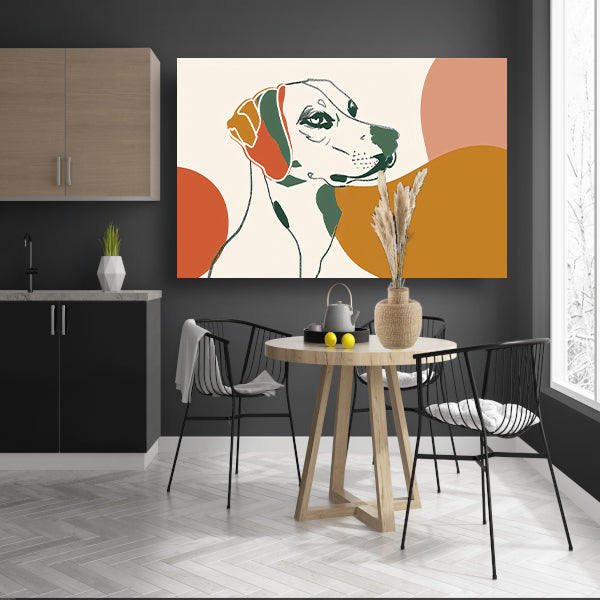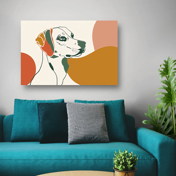 Abstracte lijntekening van een hond in kleur canvas