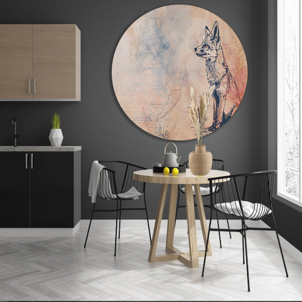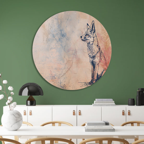 Abstracte lijntekening van vos met kleuren forex muurcirkel