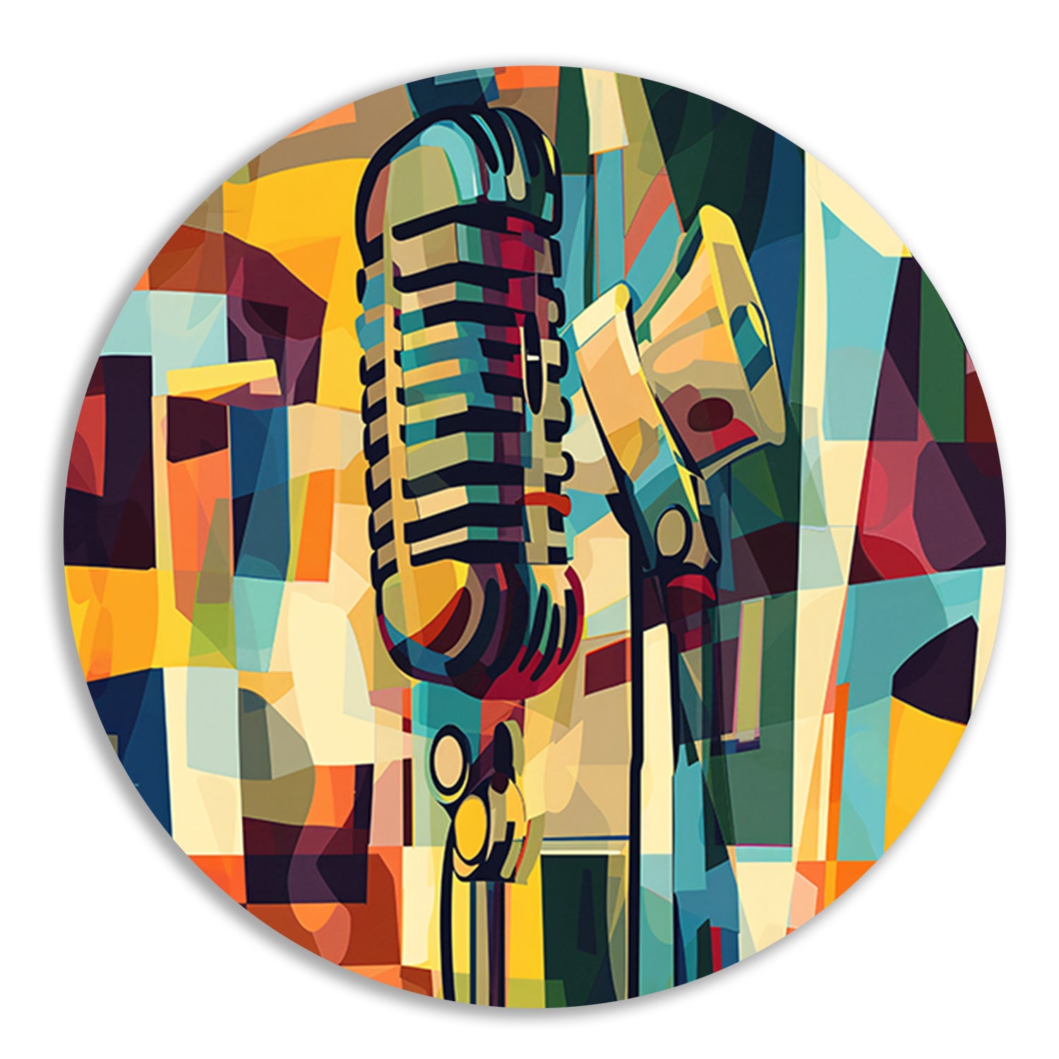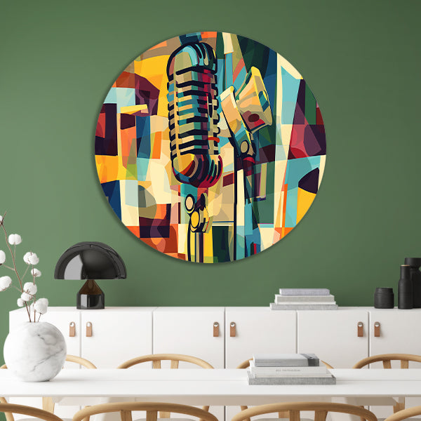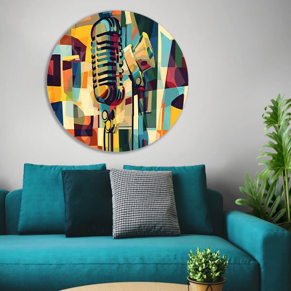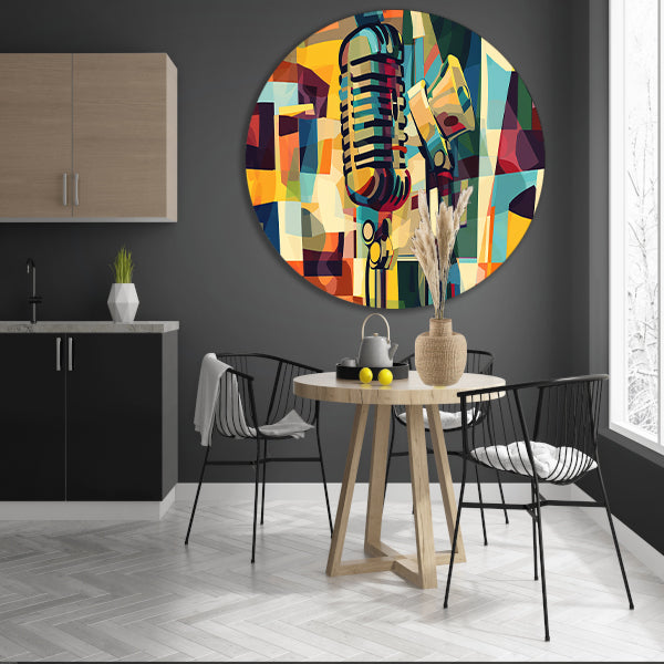 Abstracte microfoon in levendige kleuren aluminium muurcirkel