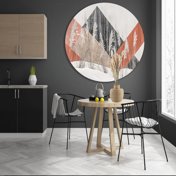 Abstracte minimalistische kunst met planten en bergen aluminium muurcirkel