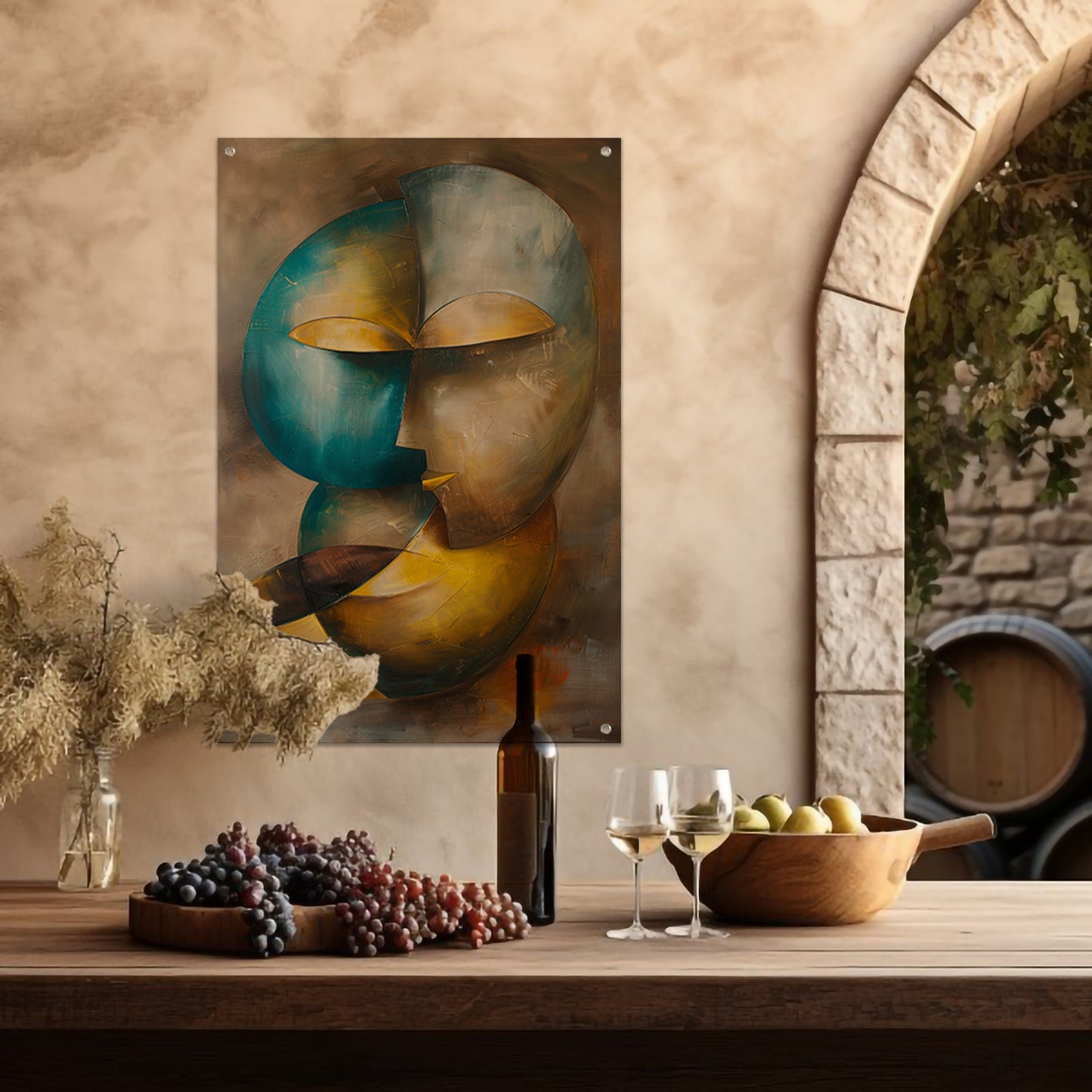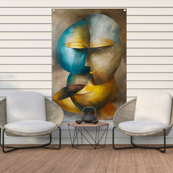 Abstracte moderne schilderij van een gezicht tuinposter
