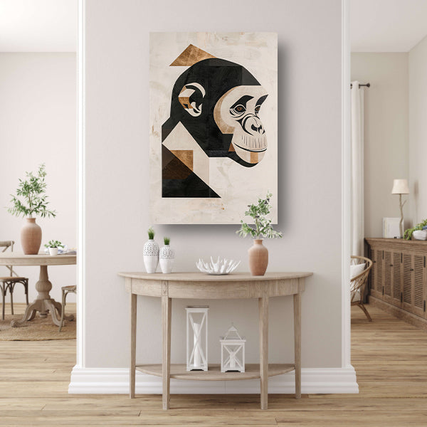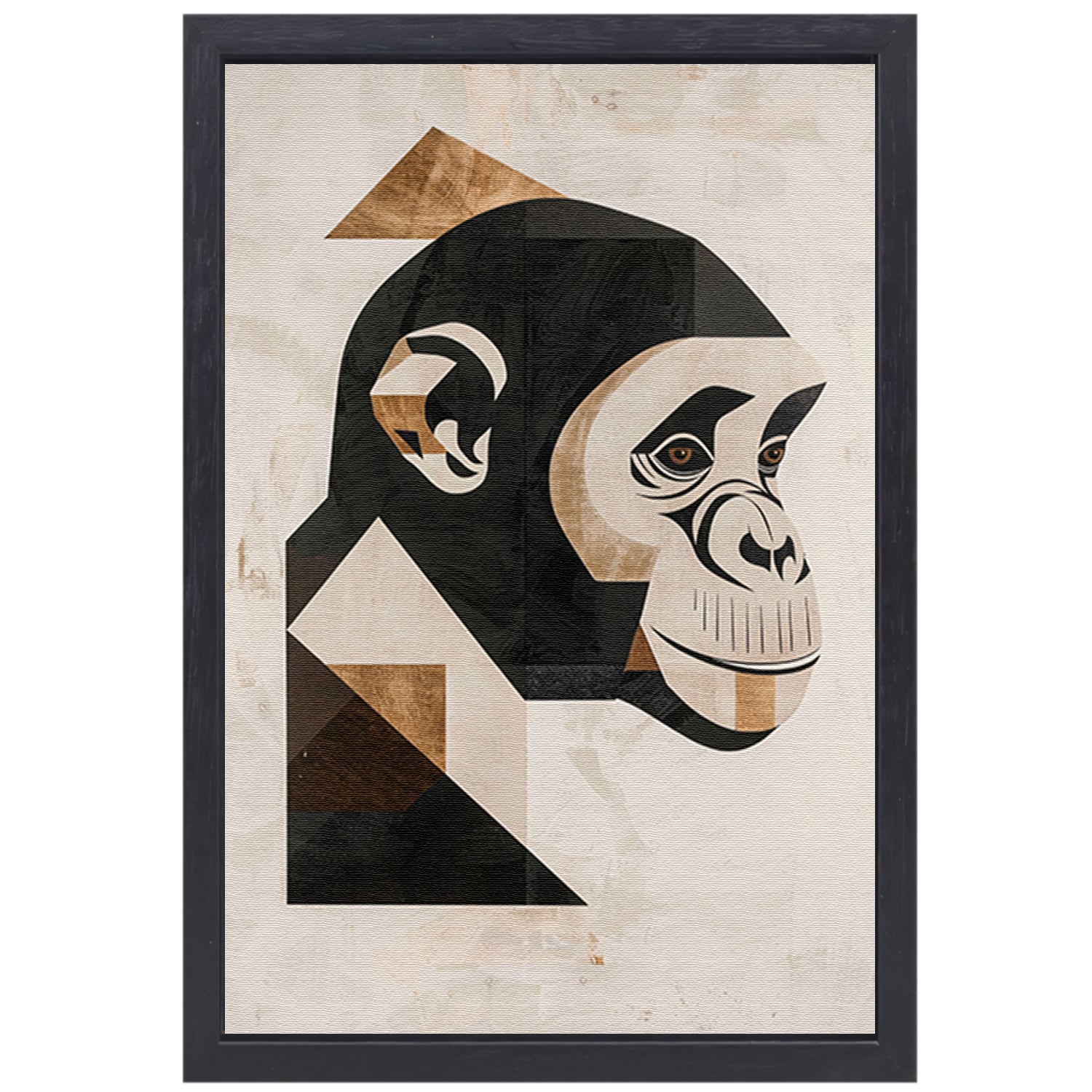 Abstracte Monochrome Aap Geometrie Kunstwerk canvas met baklijst