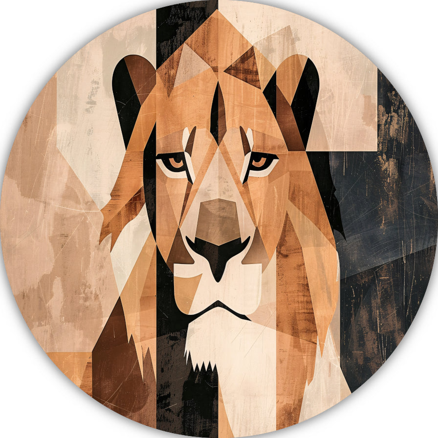 Abstracte Monochrome Leeuw in Geometrische Stijl aluminium muurcirkel