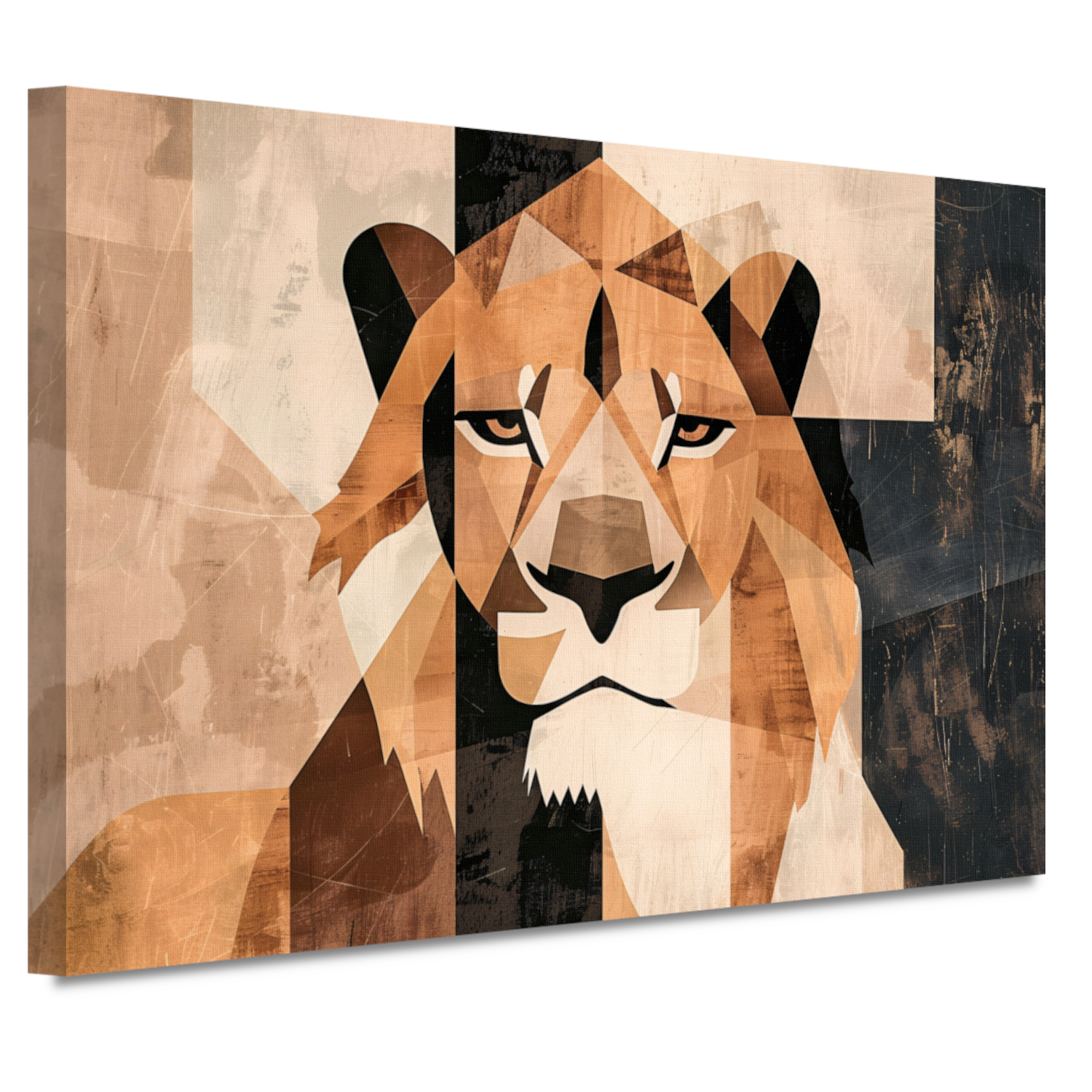 Abstracte Monochrome Leeuw in Geometrische Stijl canvas