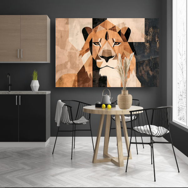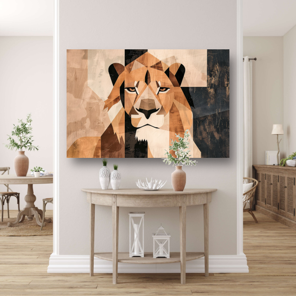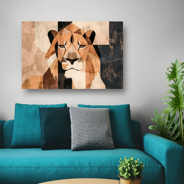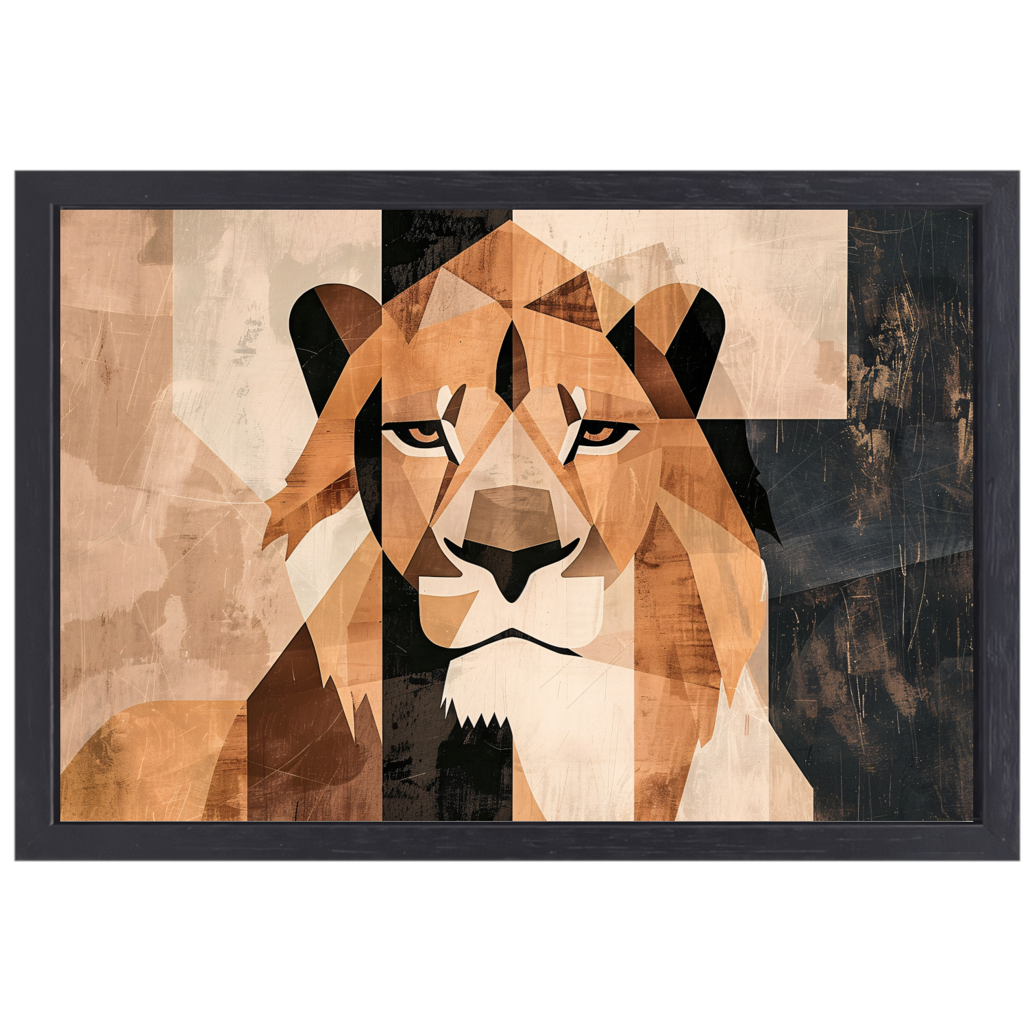 Abstracte Monochrome Leeuw in Geometrische Stijl canvas met baklijst