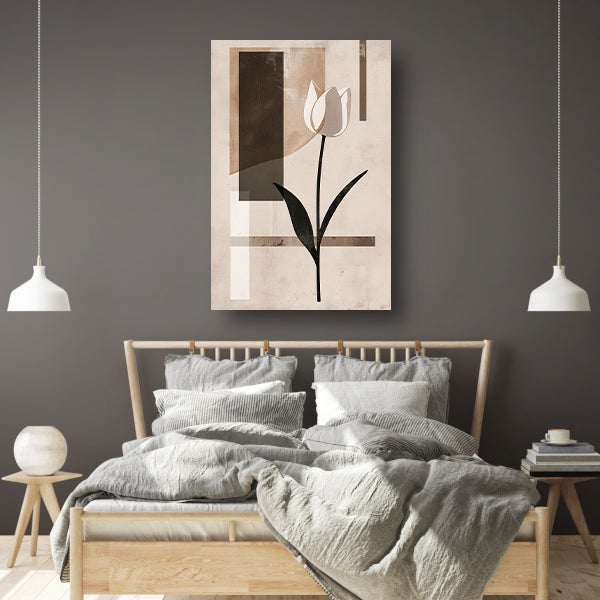 Abstracte Monochroom Tulp op Geometrische Achtergrond canvas