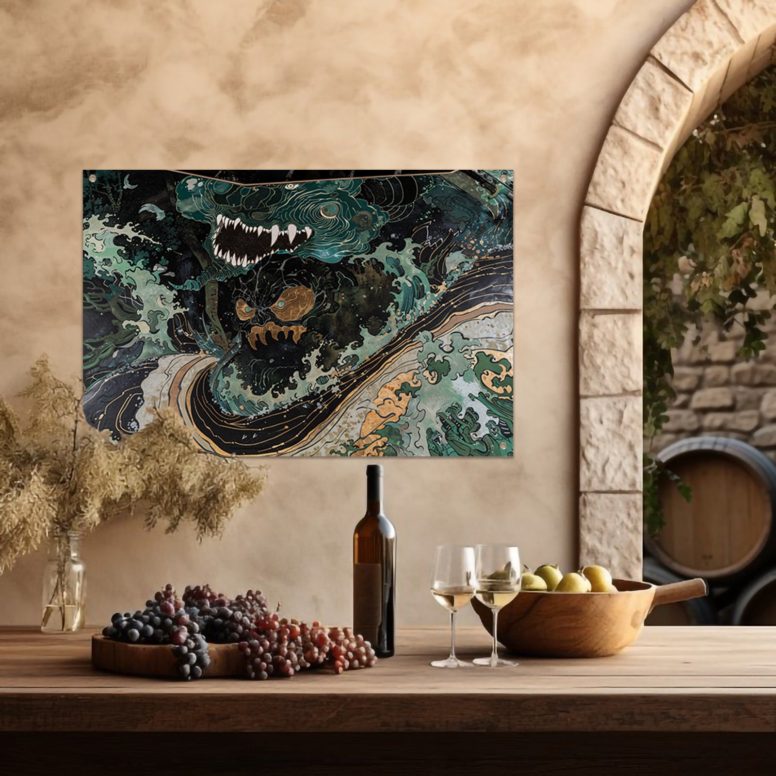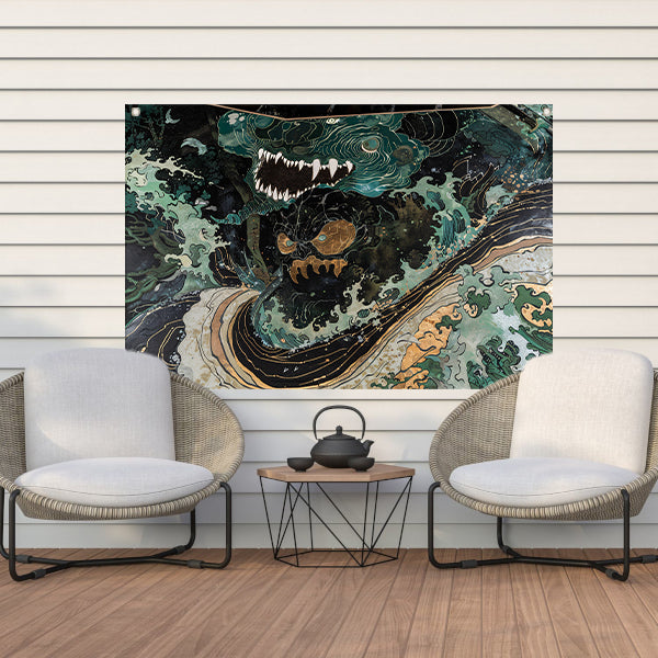 Abstracte monsterlijke golf in dynamische natuur tuinposter